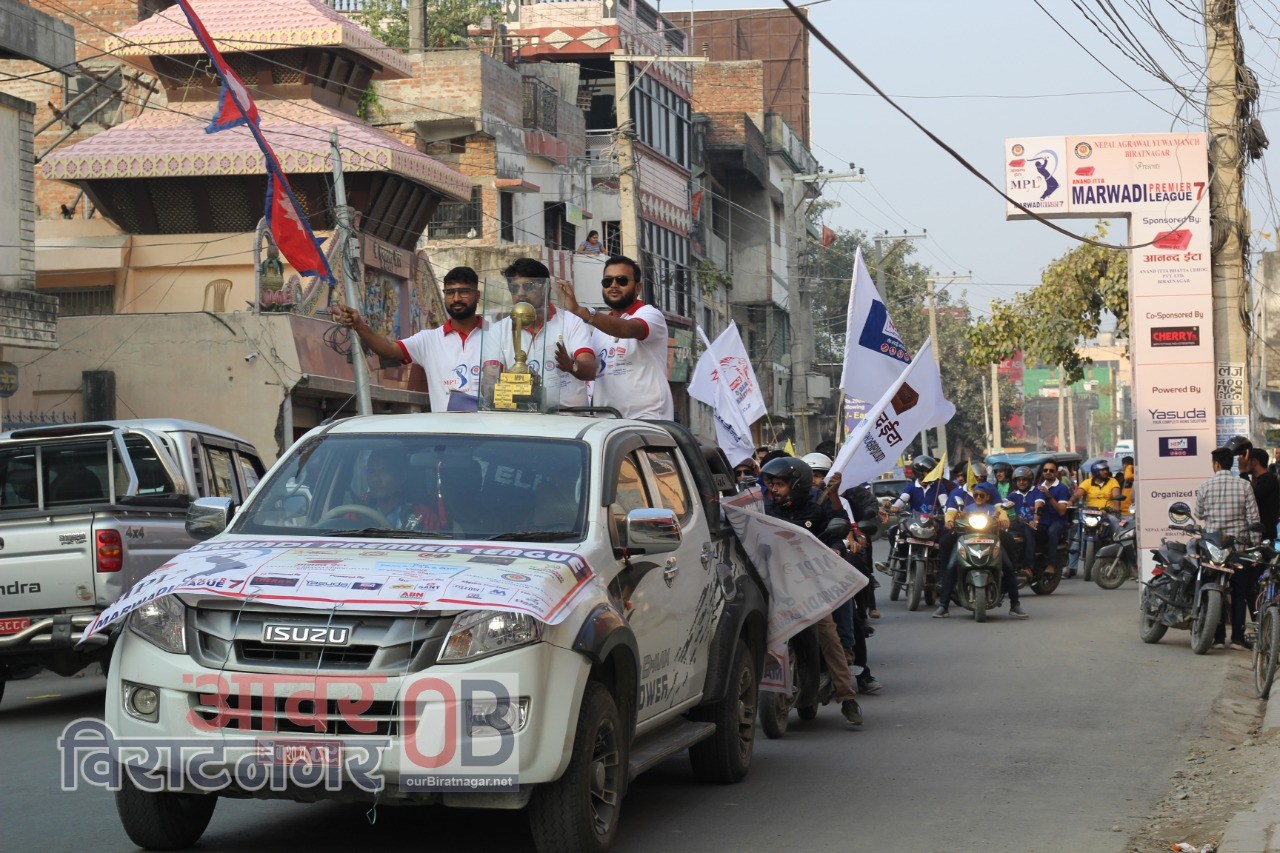 विराटनगर । नेपाल अग्रवाल युवा मञ्च विराटनगरको आयोजनामा हुन लागेको मारवाडी प्रिमियर लिगको सातौं संस्करणको पूर्व सन्ध्यामा आज मोटरसाइकल र्याली निकालिएको छ ।