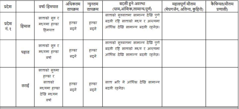 यसैगरी देशका अधिकांश भू(भागमा न्युनतम तापक्रम र अधिकतम तापक्रम हल्का बढ्ने सम्भावना रहेको छ।