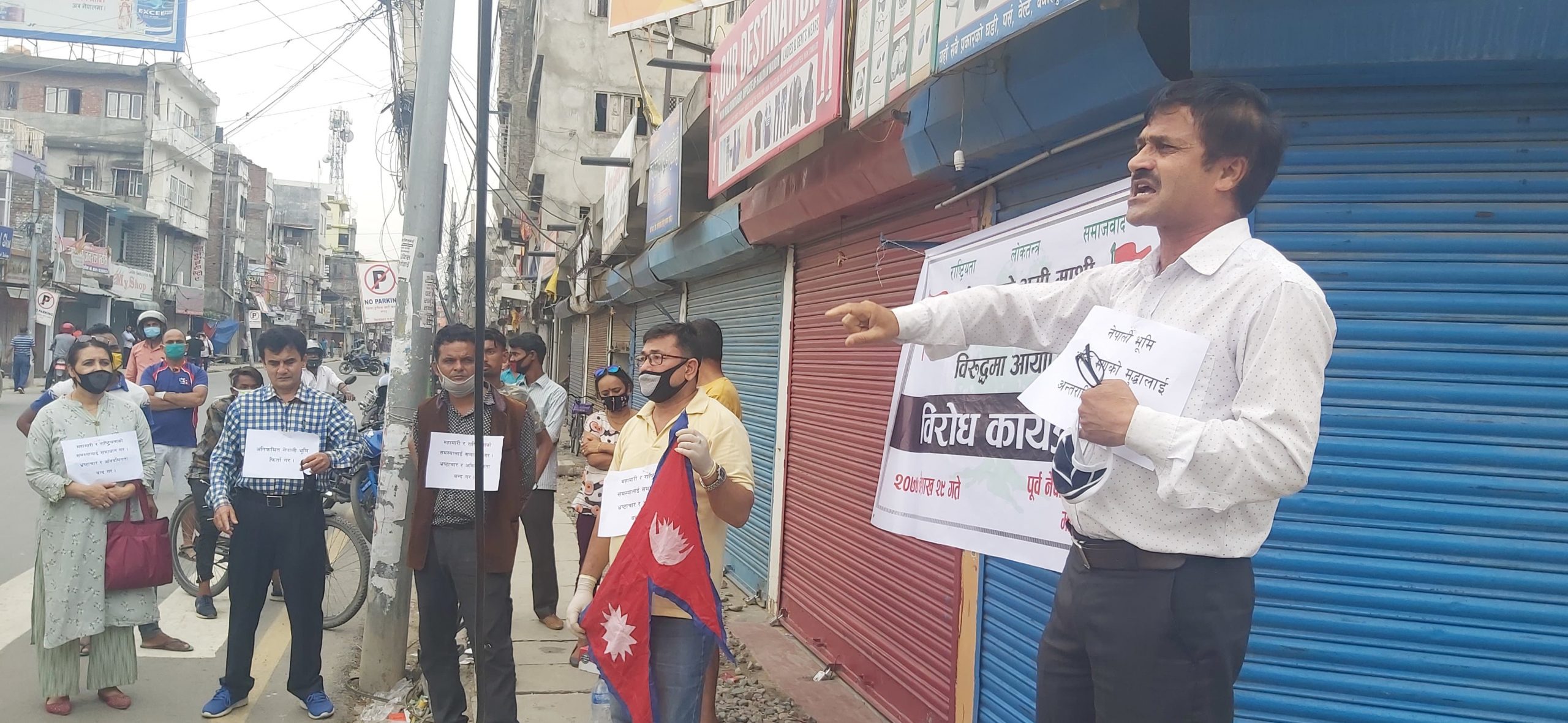 विराटनगरको मेनरोडमा अवस्थित बी प्लटमा सोमबार भेला भएका नेपाली काँग्रेस निकट विद्यार्थी संगठनका पूर्वनेताहरूले सरकारले नेपालको भूमि जोगाउन नसकेको भन्दै विरोध स्वरुप प्रदर्शन गरेका हुन् ।