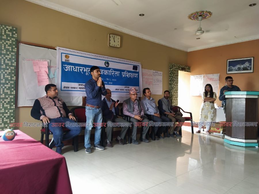 नेपाल पत्रकार महासंघको आयोजना तथा मोरड शाखाको संयोजनमा एक आधारभूत पत्रकारिता प्रशिक्षण सम्पन्न भएको छ। उक्त तालिममा ४० जना पत्रकारिता गर्दै आएका वा पत्रकारिता अध्ययनरत व्यक्तिहरुले सहभागिता जनाएका थिए ।