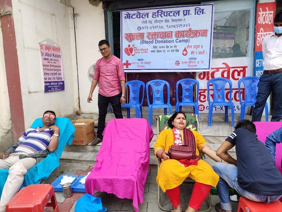 विराटनगर ९ रंगेली रोड स्थित गेट वेल अस्पतालले खुल्ला रक्तदान कार्यक्रम सम्पन्न गरेको छ। जीवन अमुल्य छ बचौं र बचाऔ भन्ने मूल उद्देश्यका साथ बिराटनगरमा आयोजना गरिएको उक्त कार्यक्रमबाट २५ पिन्ट रगत संकलन भएको छ।