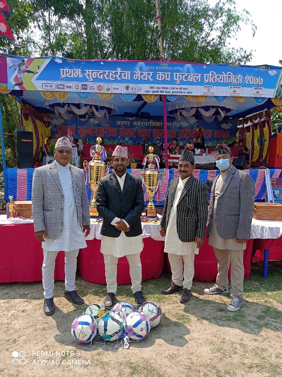 सुन्दरहरैंचा नगरपालिका मोरंगको मूल आयोजनामा अन्तर नगरपालिका स्तरिय प्रथम मेयर कप फुटबल प्रतियोगिता भईरहेको छ। गत वैशाख ६ गतेबाट बेलबारी नगरपालिका र लेटांग नगरपालिका बीचको पहिलो प्रतिष्पर्धापछी सुरु भएको सो प्रतियोगिता अन्तर्गत आज पहिलो चरणको अन्तिम खेल सुनवर्षी नगरपालिका र पथरी शनिश्चरे नगरपालिका विच हुदैंछ।