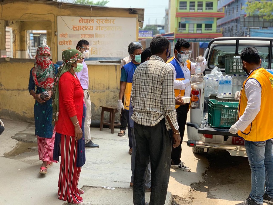 विश्वव्यापी रुपमा फैलिएको यस कोरोना महामारीका समयमा लायन्स क्लब अन्तराष्ट्रीय अन्तर्गत लायन जिल्ला ३२५ ए वानका दुई क्लबहरु लायन्स क्लब अफ बिराटनगर एक्जिक्युटिभ र लायन्स क्लब अफ रानीले संयुक्त पहलमा लायन्सको मूल उद्देश्य 'हामि सेवा गर्छौं ' लाई सार्थक पार्दै रोगले मरेपनि मान्छे भोकले मर्नुनपरोस भन्ने उद्धेश्यका साथ गत ६ दिनदेखि बिराटनगरका अस्पतालहरुमा खाना खुवाउन थालेको छ।