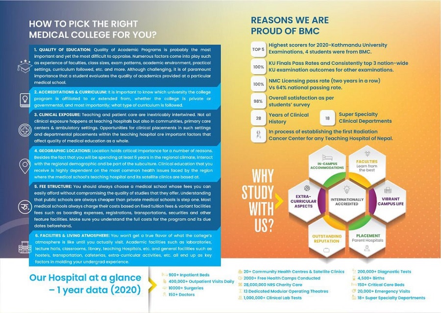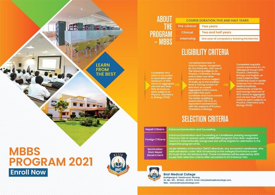 गत सात वर्ष अघिदेखि एमबिबिएस मात्र अध्यन अध्यापन हुदै आएको यस कलेजमा यसवर्ष देखि आफुहरुले नर्सिङ्गमा २० सिट, डाक्टर अफ फिजियोदरापिका लागि ३० सिट र एमबिबिएसका लागि १०० सिट गरि जम्मा १५० जनाको लागि को लागि नयाॅ भर्ना खोलिएको आवर विराटनगर संग कुरा गर्दै कलेजका प्रशाशकिय अधिकृत प्रकाश पोखरेलले जानकारी दिए।