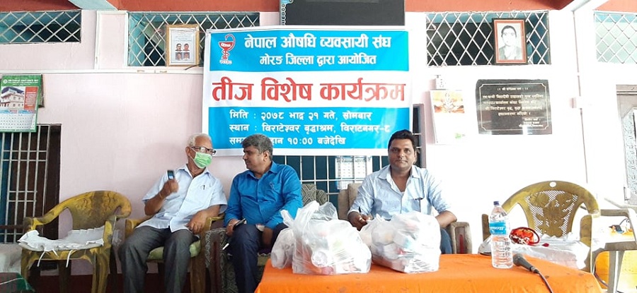 संघले आयोजना गरेको तीज विशेष कार्यक्रमको संयोजक सरीता श्रेष्ठ चौधरी रहेकी थिइन् । कार्यक्रममा नेपाल औषधी व्यवसायी संघ मोरङका अध्यक्ष लक्ष्मी तिमल्सिनाले नेपालीहरुको महान चाड तीज पर्वमा यस्ता कार्यक्रमले समाजमा भाइचारा कायम गर्ने बताए । संघले यसअघि पनि वृद्धाश्रममा सामाजिक उत्तरदायित्व अन्तर्गत रहेर खाद्यान्न र स्वास्थ्य सामाग्रीहरू पनि बितरण गर्दै आएको थियो ।
