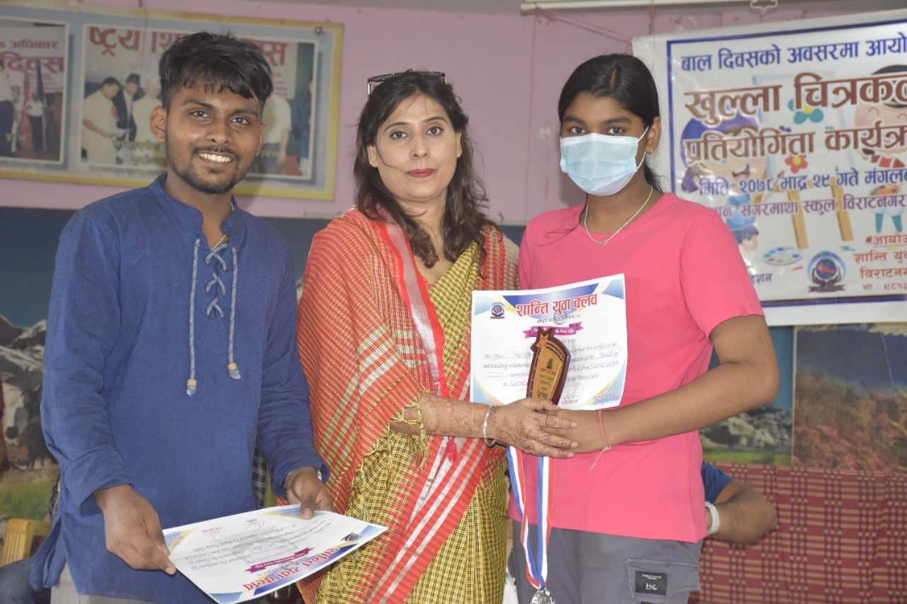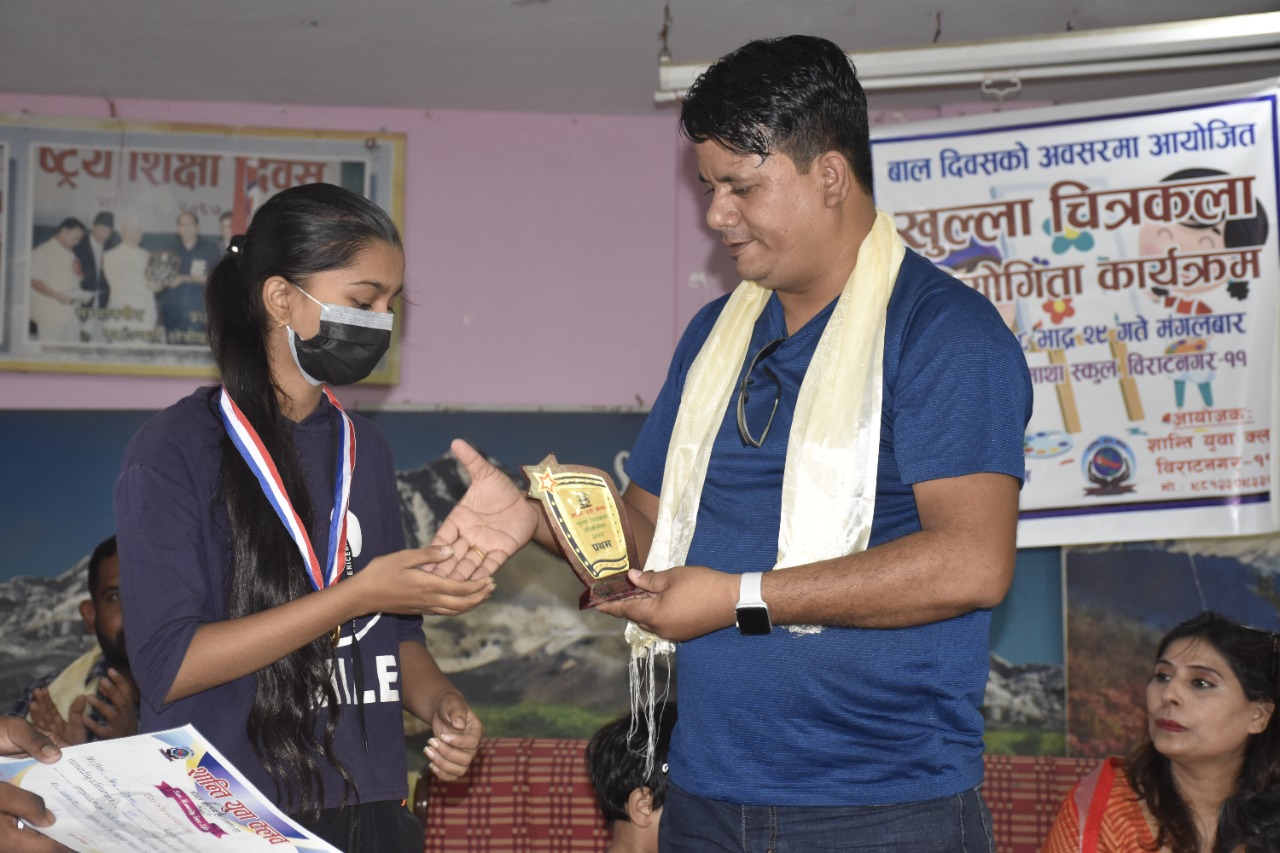आज भदौ २९ अर्थात राष्ट्रिय बाल दिवस देशैभर बिभिन्न कार्यक्रम गरि मनाइएको छ। यसै अवसरमा बिराटनगरको शान्ति युवा क्लबले विराटनगर ११ मा रहेको सगरमाथा स्कुलमा खुला चित्रकला प्रतियोगिता आयोजना गरेको छ।