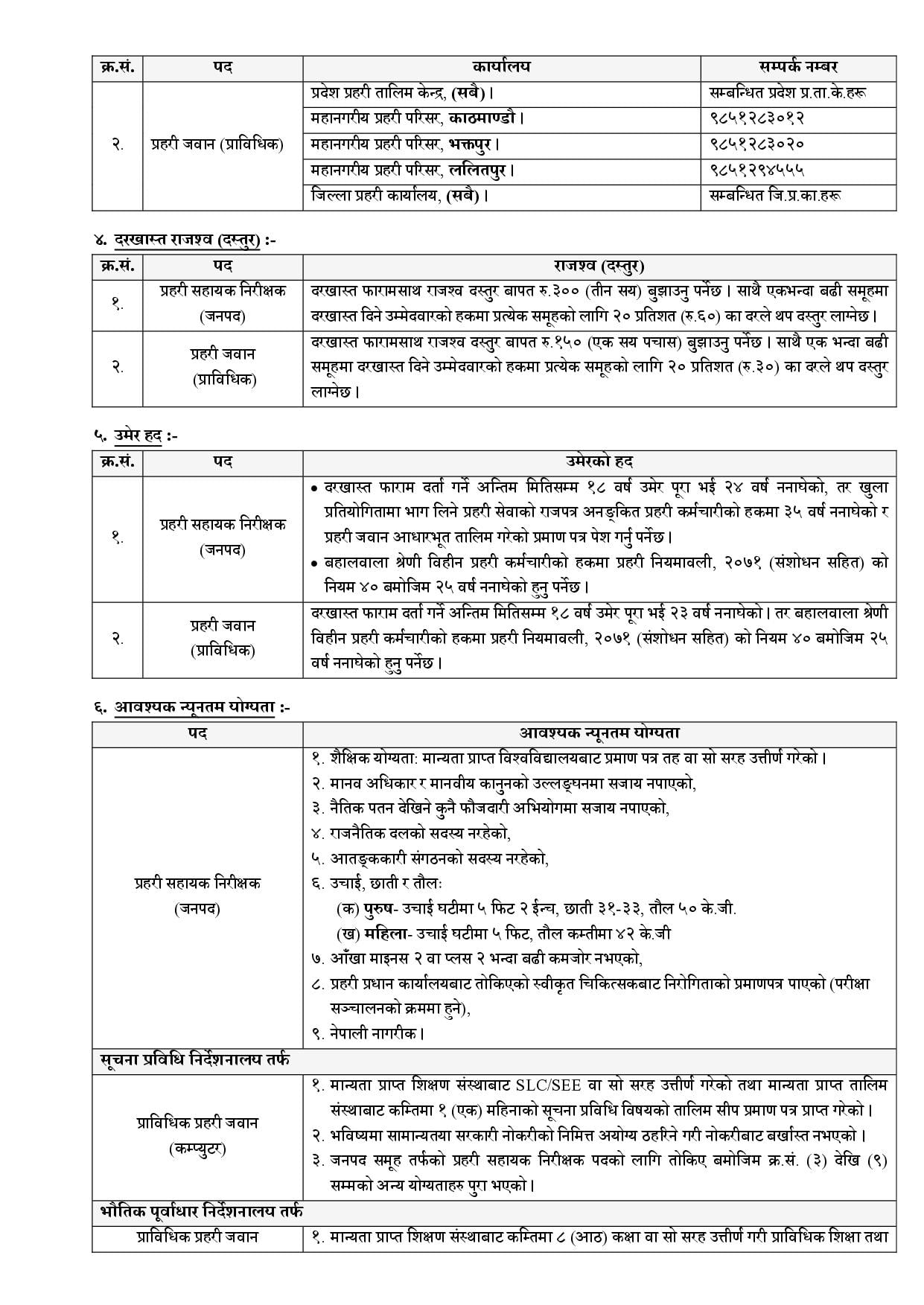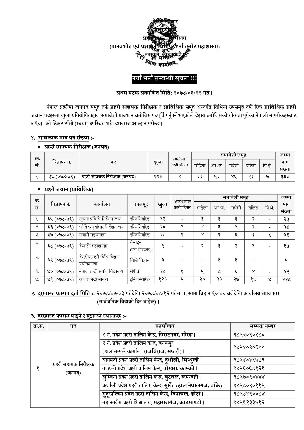 प्रदेश १ प्रहरी कार्यालय बिराटनगरले विभिन्न रिक्त पदहरुका लागि सुचना सार्वजनिक गरेको छ । जनपद प्रहरी समूहतर्फ प्रहरी सहायक निरीक्षक र प्राविधिक प्रहरी समूह अन्तर्गत विभिन्न उपसमूहतर्फ रिक्त प्राविधिक प्रहरी जवान पदहरूको विज्ञापन प्रकाशन सम्बन्धी सूचना आज प्रकाशित गरिएको छ।