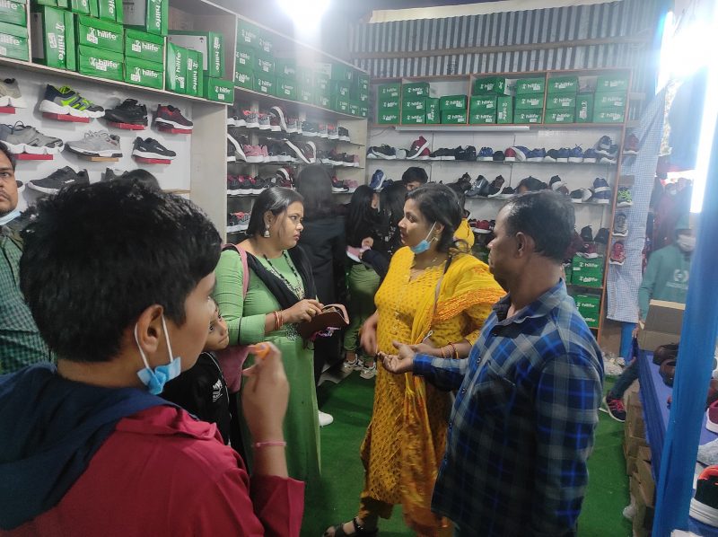 ‘स्वदेशी उत्पादन नै प्रयोग गरौं’ भनेर उपभोक्तालाई जागरुक बनाउन अहिले विराटनगरको भाटभटेनी छेउ सुपर मार्केटमा नाम चलेका ३ वटा जुत्ताचप्पल कम्पनीका स्टल राखिएका छन् ।
