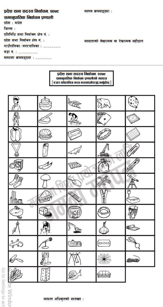 प्रदेशसभा निर्वाचनका समानुपातिक नमुना मतपत्र
