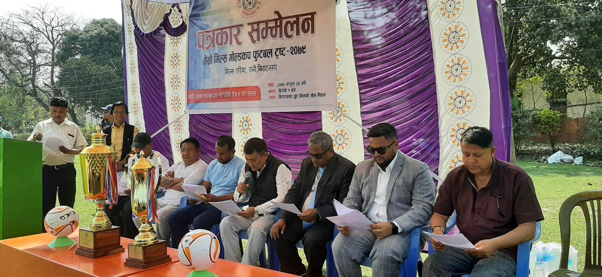 विराटनगर । विराटनगरको जुटमिल खेल मैदानमा तेस्रो संस्करणको मिल्स गोल्डकप २०७९ हुने भएको छ । विराटनगर जुट मिल्सको खेल मैदानमा शनिबारदेखि हुने प्रतियोगिताको सम्पूर्ण तयारी पुरा भएको बिहीबार पत्रकार सम्मेलन गरी जानकारी गराएको छ ।