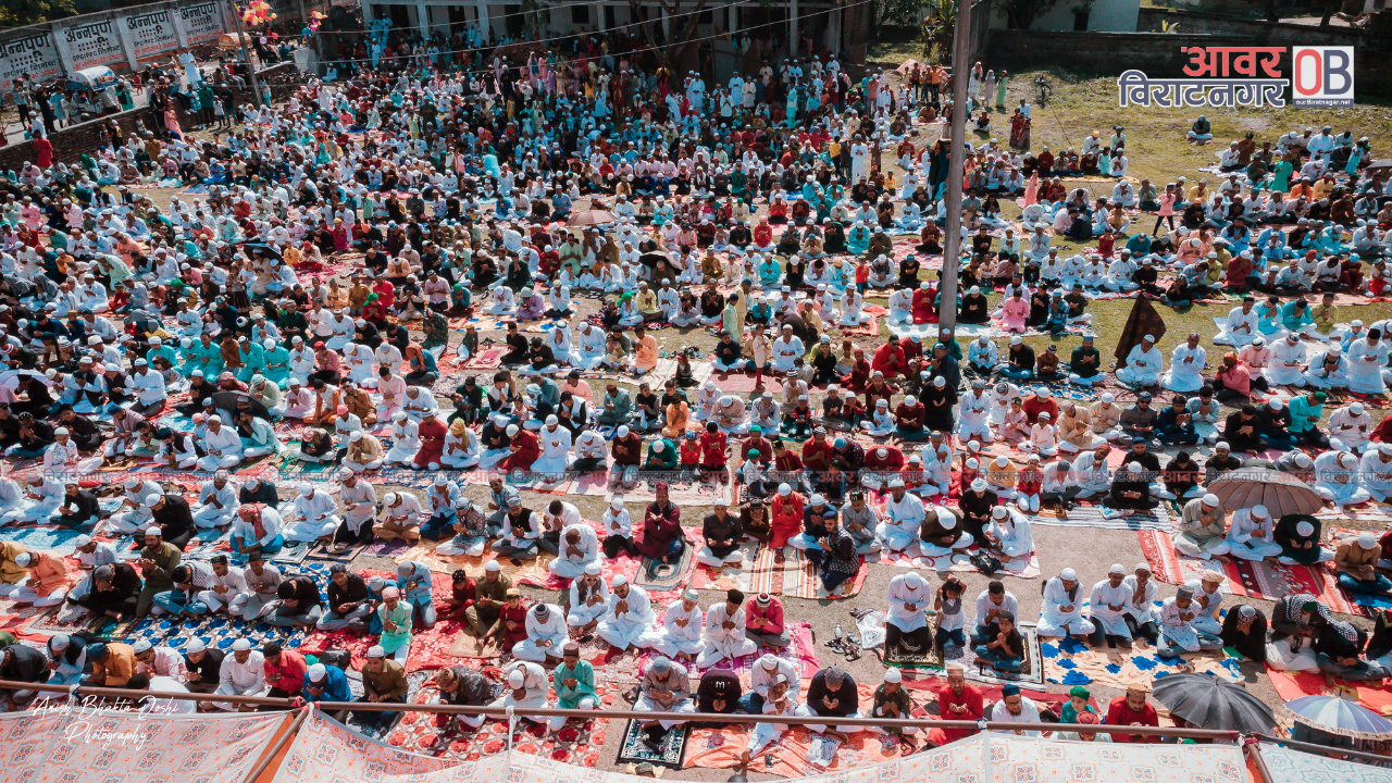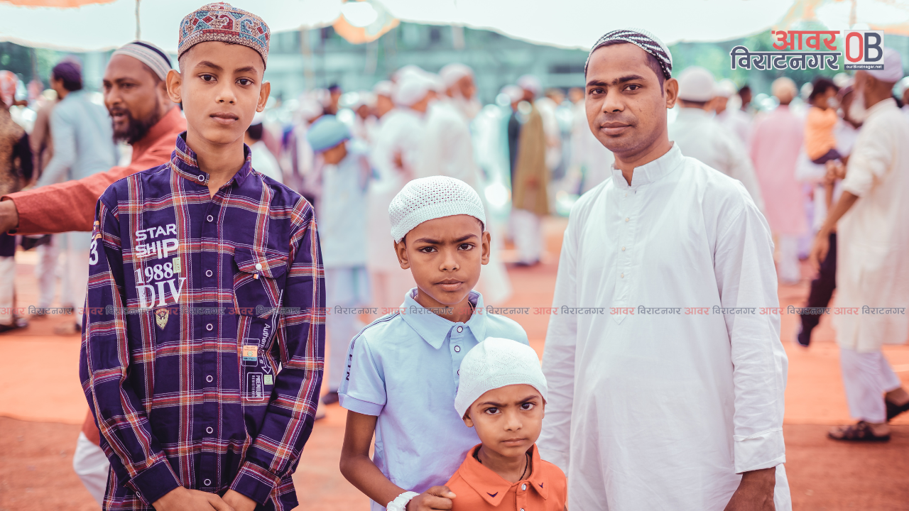 विराटनगर महानगरपालिका–१३ स्थित इदगाहमा गएर इस्लाम धर्मावलम्बीले आज बिहान सामूहिक नमाज (प्रार्थना) गर्नाका साथै एकापसमा अँगालो मारेर इदमुबारक (बधाई तथा शुभकामना) साटासाट गरिएको छ ।