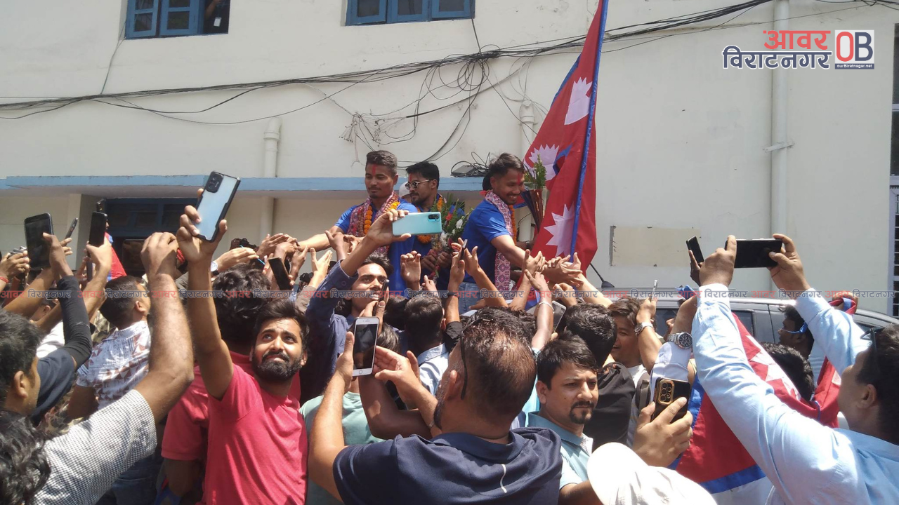 राष्ट्रिय क्रिकेट टिमलाई सम्मानसहित विराटनगर परिक्रमा गराउनका लागि विराटनगर विमानस्थलमा समर्थकको भिड लागेको थियो। विमानस्थलबाट नगर परिक्रमा सुरू गरिएको हो।