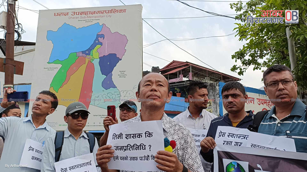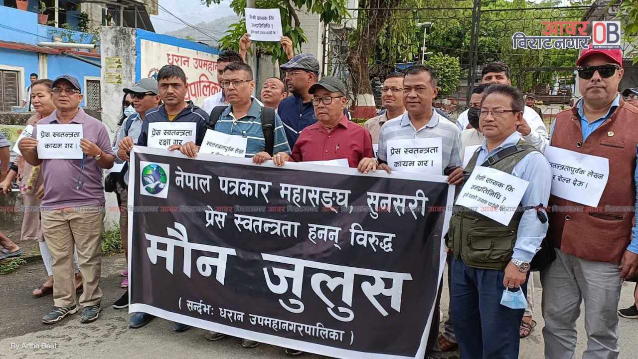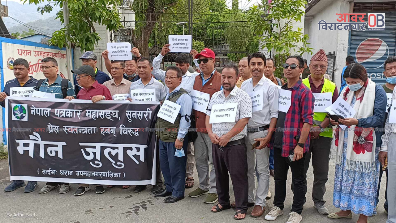 स्थानीय सरकार प्रमुख र तीनका सर्मथकहरुले प्रेस स्वतन्त्रतामाथि धावा बोलेको र नागरिकहरुको आवाजलाई नै दमन गरेको कारण पत्रकारीताको रक्षाको लागि धरानमा मौन जुलुस निकालीएको नेपाल पत्रकार महासंघ सुनसरीका पुर्वअध्यक्ष हर्ष सुब्बाले बताए ।