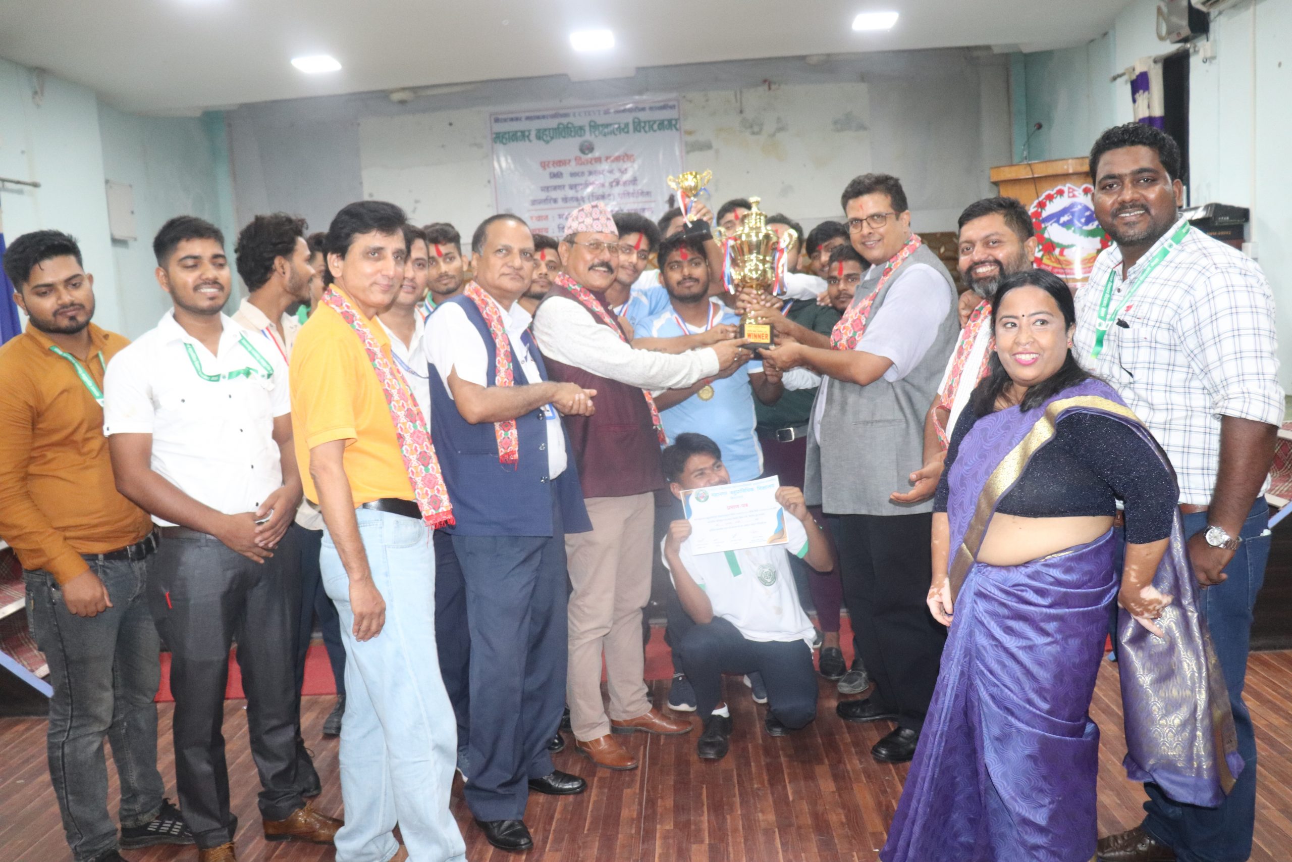 विराटनगर । विराटनगर महानगरपालिकाका र सिटीइभिटीको साझेदारीमा संचालीत महानगर बहुप्राविधिक शिक्षालयले आयोजना गरेको आन्तरिक खेलकुद प्रतियोगिताका विजेताहरुलाई पुरस्कार, शिल्ड र प्रमाणपत्र प्रदान गरिएको छ।