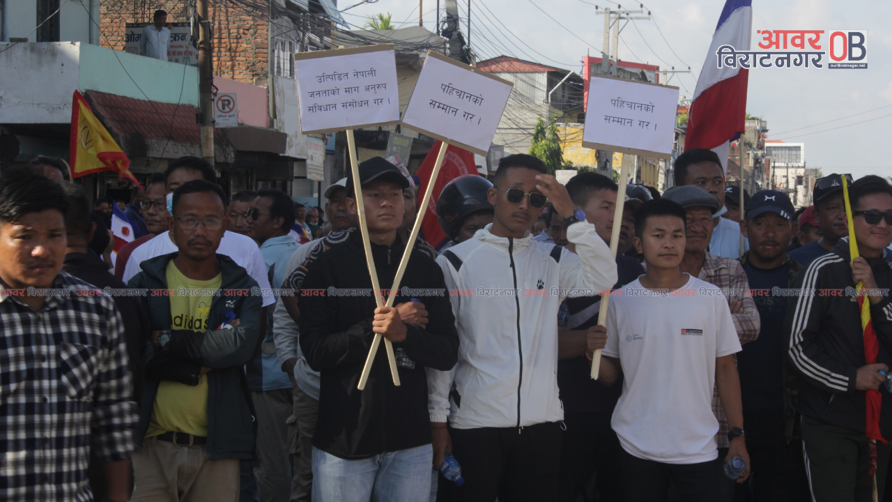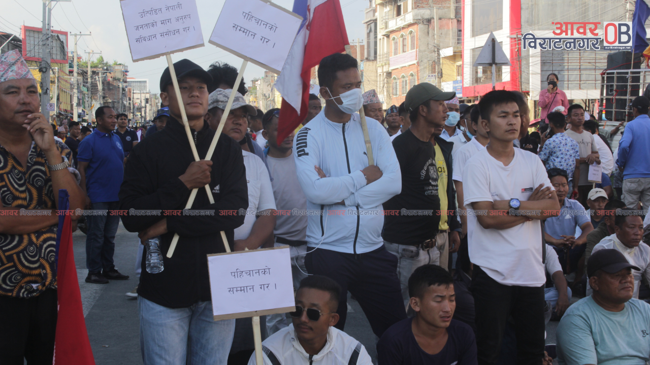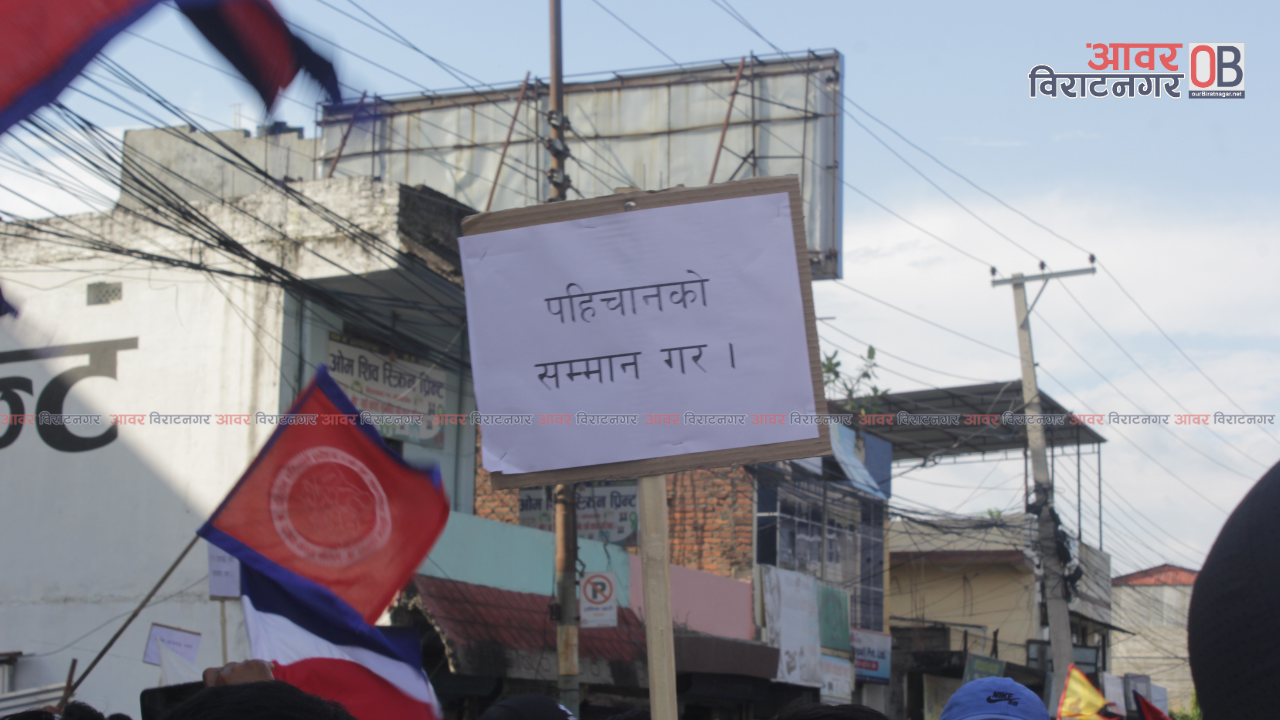 यता जिल्ला प्रशासन कार्यालय मोरङले असोज १ गतेबाट कुनै पनि सार्वजनिक स्थानहरुमा भेला तथा जुलुस नगर्न भन्दै सुचना जारी गरेको थियो । तर पहिचान पक्षधरले भने शान्तिपुर्वक कोणसभा गरेको थियो ।