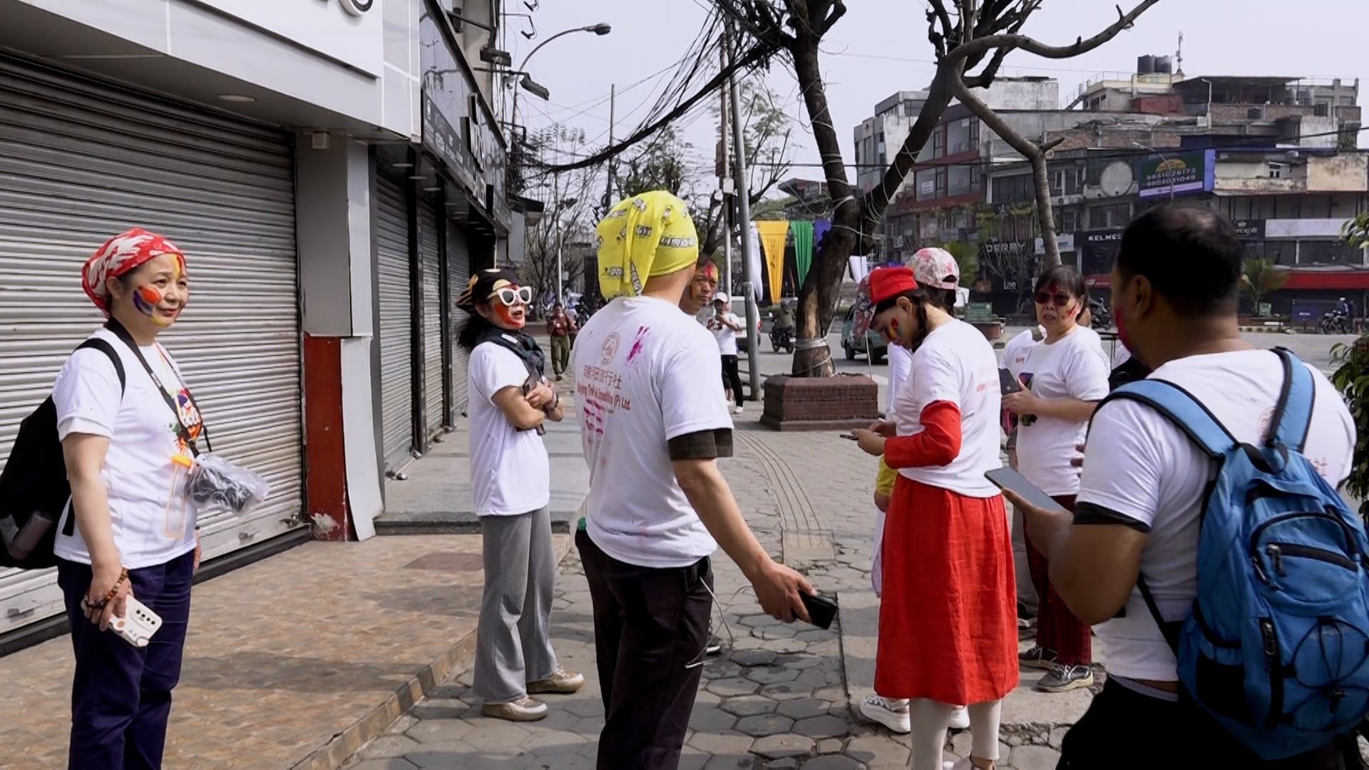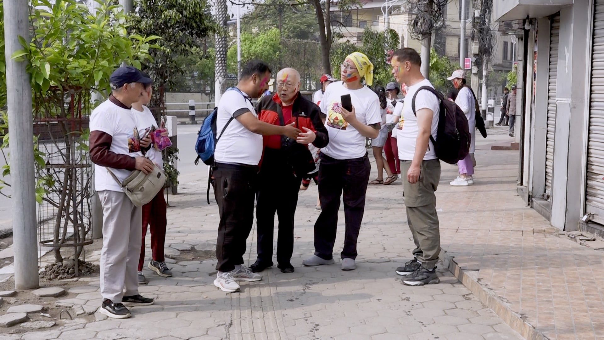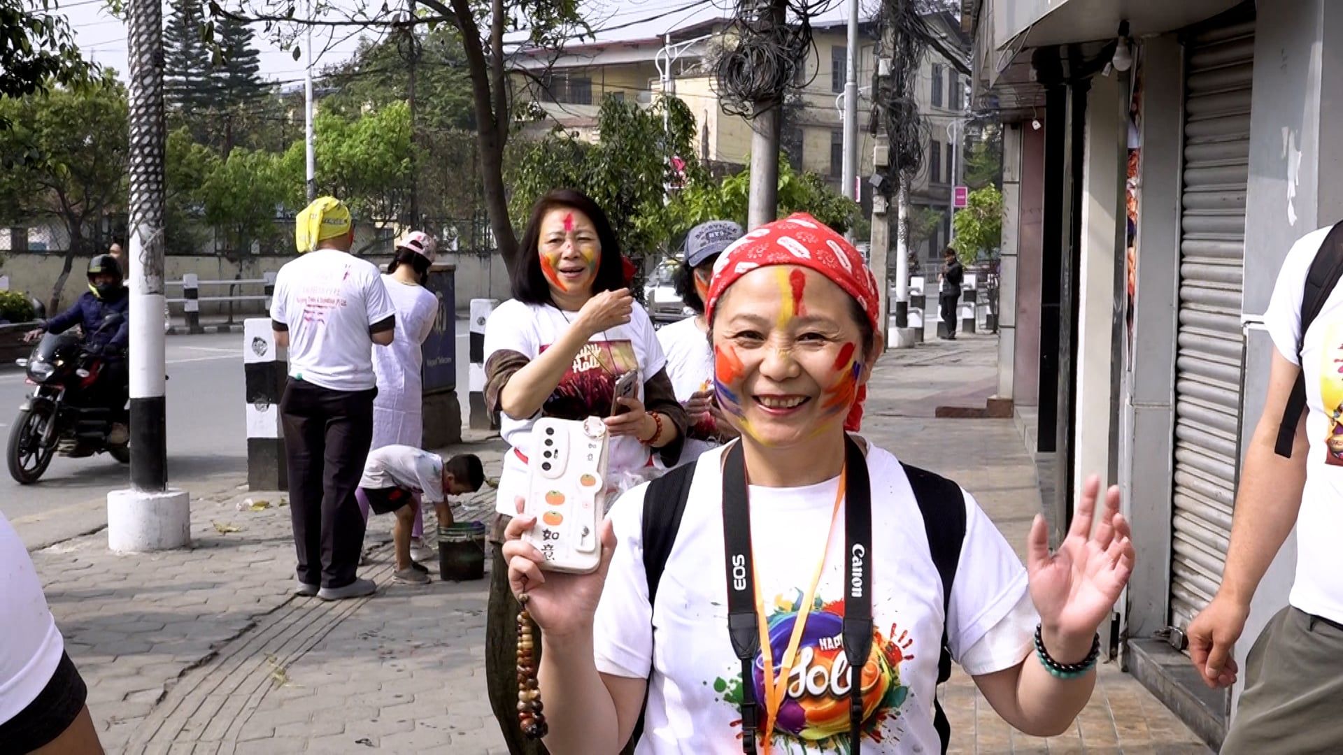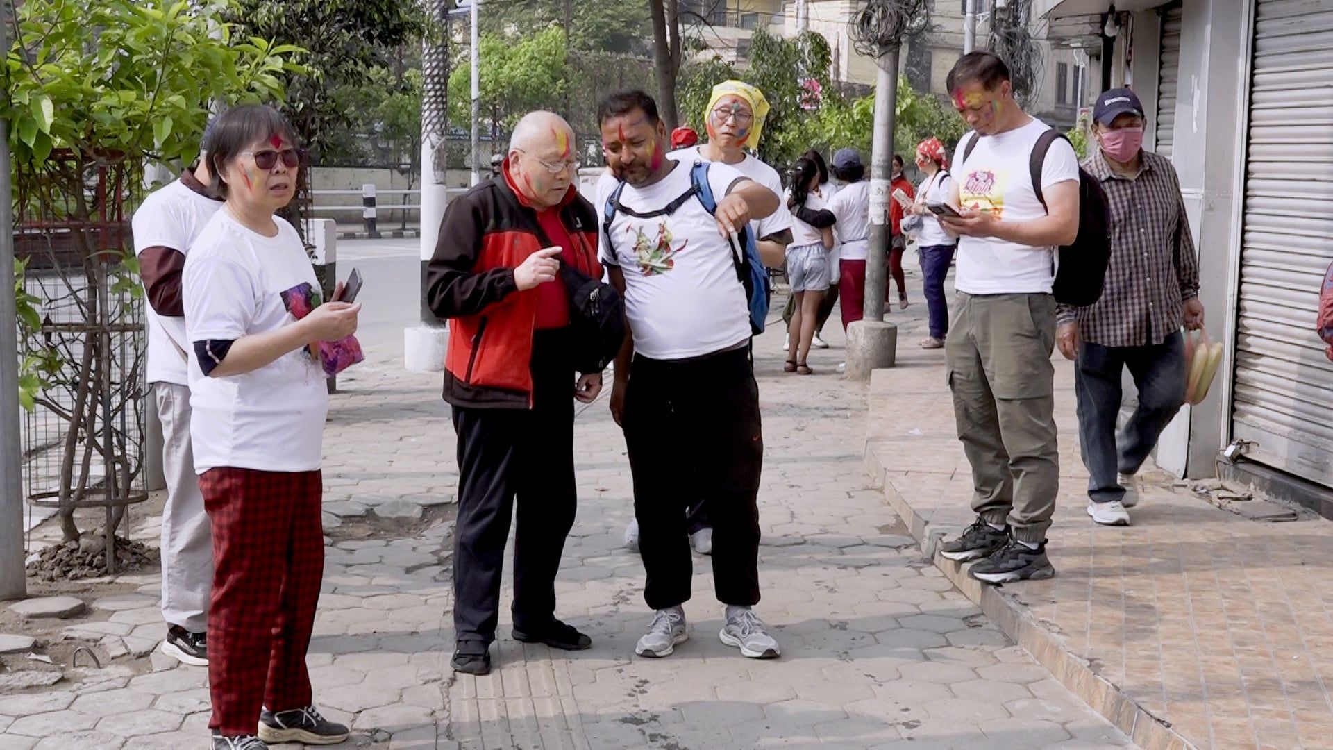 चिनियाँ पर्यटकहरूले एकअर्कामा रङ दलेर उत्साहका साथ होली मनाएका छन् ।
