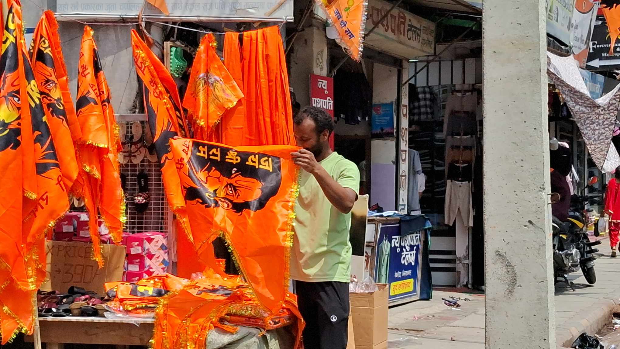 भत्तजनहरुले आफ्ना सवारी साधनदेखी घरका छतहरुमा समेत रामभगवानको ध्वाजाले सजाएको देख्न सकिन्छ । बजारमा रामभगवान अंकित टिसर्ट , झन्डाहरु बेच्न समेत राखिएका छन् ।