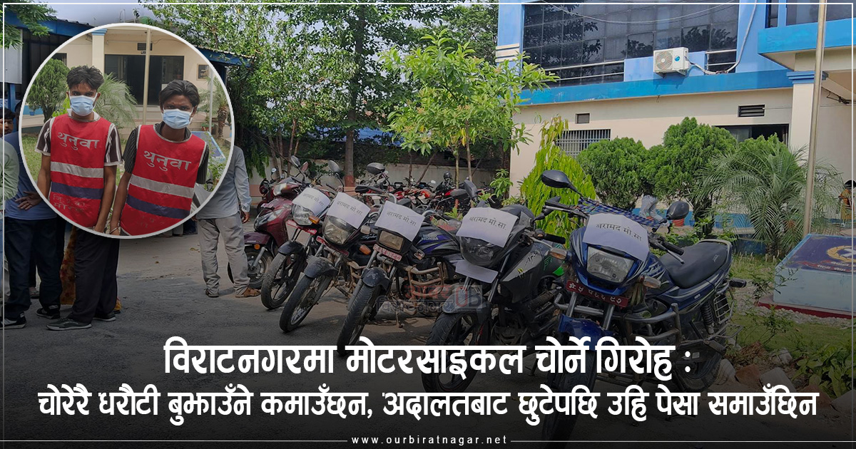 विराटनगर । गत मंसिरमा प्रहरीले सुनसरी हरिनगरा–६ का नमाम अन्सारीलाई पक्राउ ग¥यो । उनी विराटनगरसहित पूर्वका शहरमा मोटरसाइकल चोरी गर्ने पेसा नै अंगाल्थे । प्रहरीले छ महिनादेखि उनको गतिविधि विराटनगरमा निगरानी गरिरहेको थियो । विभिन्न स्थानको सिसी टिभी फुटेजको विश्लेषण गर्दा नमाजसहित चारजना विराटनगरमा मोटसाइकल चोरी गर्ने मुख्य समूहको रुपमा प्रहरीले ठहर ग¥यो ।