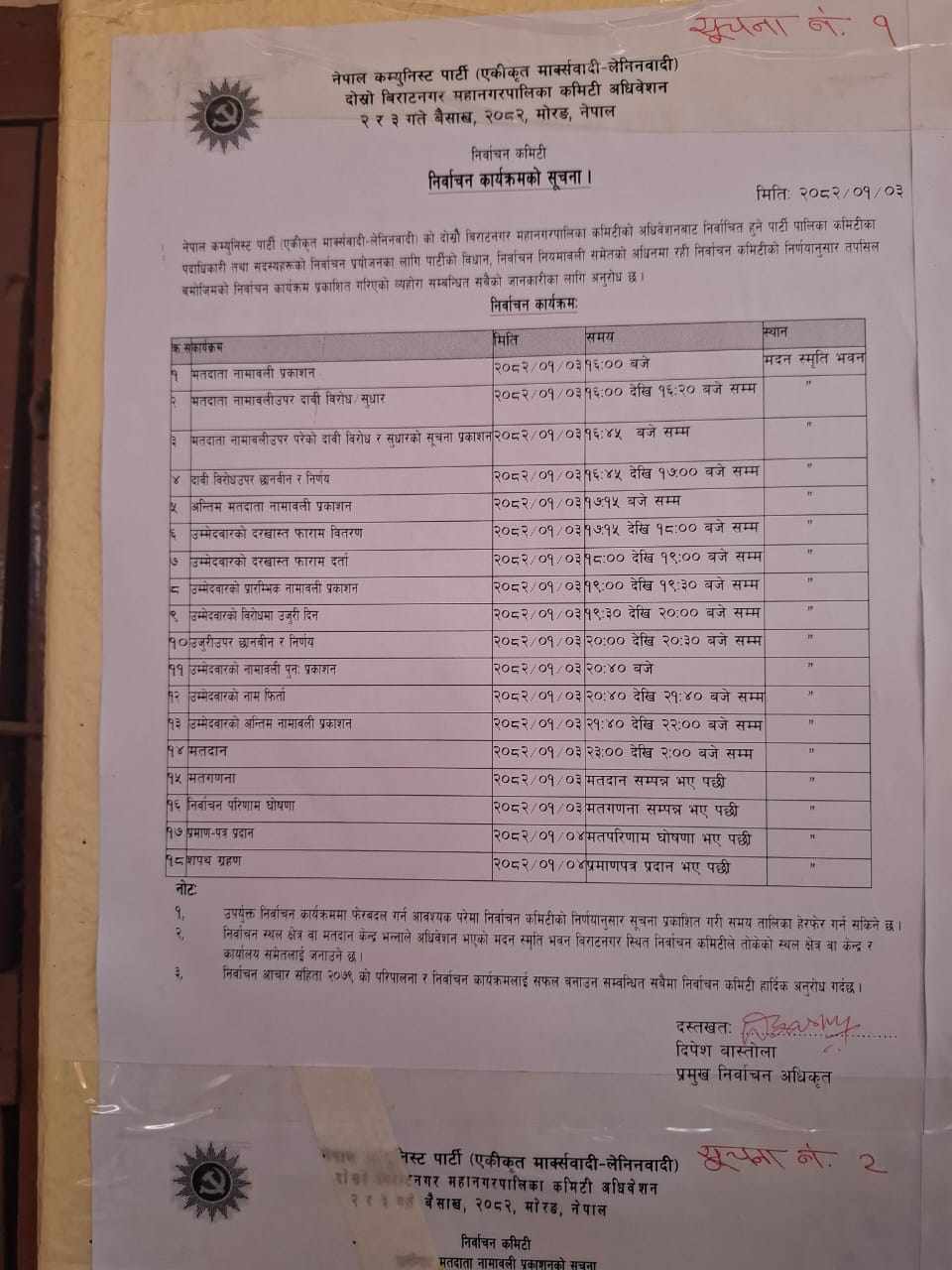 निर्वाचन कमिटीले आजै उम्मेदवारको अन्तिम नामावली प्रकाशन गरी मतदान पनि राती नै सम्पन्न गर्ने तयारी अघि बढाएको जनाइएको छ । यस्तो छ निर्वाचन कार्यसुची...................