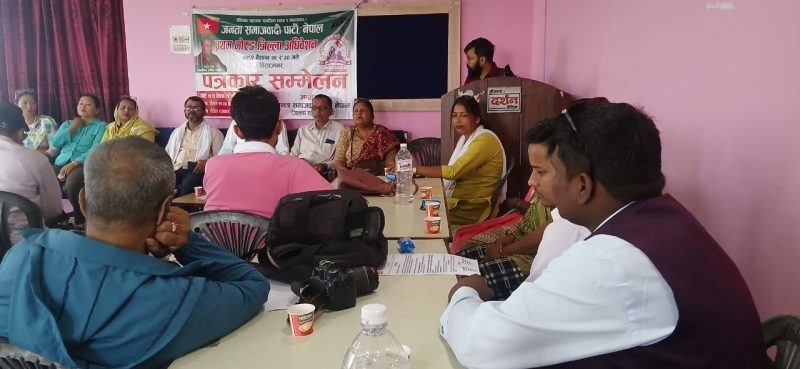 जनता समाजवादी पार्टी नेपाल मोरङले आज(बिहीबार) विराटनगरमा पत्रकार सम्मेलन गरी मारवाडी सेवा सदनमा २ दिन सम्म चल्ने जानकारी दिएको छ ।