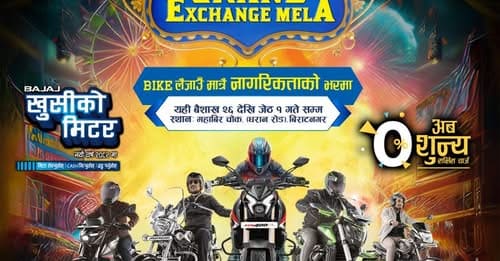 बिराटनगरको महाबिर चोकमा आयोजना हुने "बजाज ग्राण्ड एक्सचेन्ज मेला" नेपालको बृहत् मोटरसाइकल एक्सचेन्ज योजना हो। यस योजना अन्तर्गत ग्राहकहरूले आफ्ना पुराना बाइकहरूको उच्चतम् मूल्यांकन प्राप्त गरी बजाजका नयाँ मोडेलहरू सजिलै किन्न पाउनेछन्। साथै, "खुशीको मिटर" अन्तर्गत उत्सुक ग्राहकहरूले नगद र उपहार जित्ने मौका पाउनेछन्।