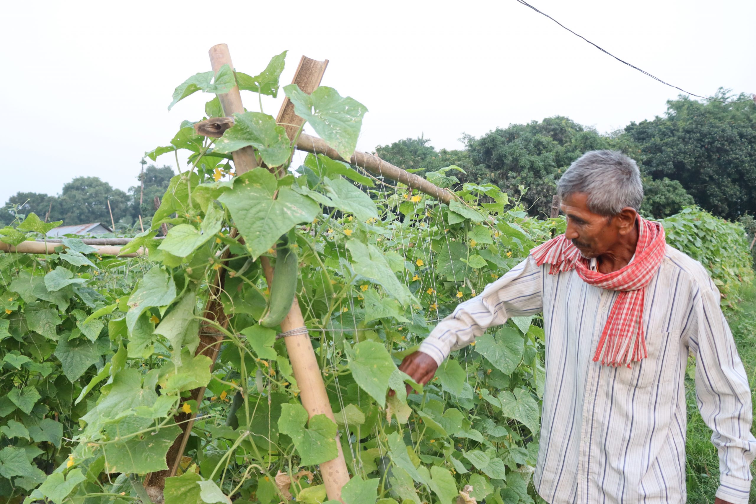 धरान (सुनसरी) । उमेरले चौसट्ठी वर्ष, जाँगर तन्नेरिका जस्तै । अचेलका युवालाई पनि गनासो गर्दै ठिक्क छ । बराहक्षेत्र नगरपालिका–८ तीनकुनेका ६४ वर्षीय युक्ति चौधरीलाई न कसैप्रति गुनासो न त आफ्नो उमेरको बहाना । बिहान सबेरै उठेदेखि बेलुका रात नछिप्पिएसम्म खेतबारीमै । उहाँको मेहनत गज्जबको छ । एकाबिहानै बारीमा पस्नुहुन्छ, काँक्रा, बोडी, घिरौँला, लौका, टमाटर स्याहार्दा स्याहार्दै समय बितेको पत्तो नै हुन्न ।