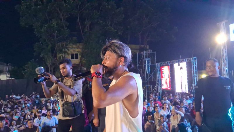 विराटनगर । अहिलेका चर्चित गायक तथा नृत्य कलाकार दुर्गेश थापाको धमकेदार प्रस्तुतिले शुक्रबार विराटनगरको गर्मी माहोलाई झन गरम बनाईदियो । विराटनगरमा पहिलोपटक सांगीतिक कार्यक्रमका लागि शुक्रबार आईपुगेका दुर्गेस थापाले आफ्ना लोकप्रिय हट हट गीतहरु प्रस्तुत गरी विराटनगरमा महोल तताए ।