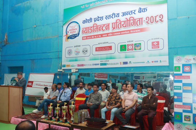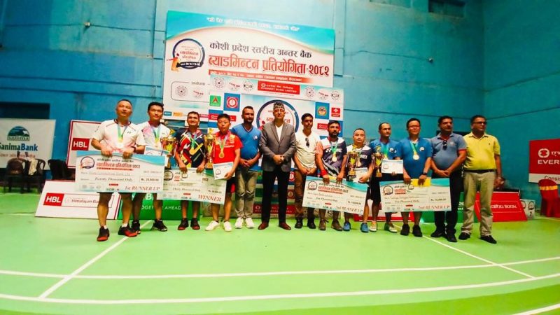विराटनगर । विराटनगरमा सम्पन्न नेपाल राष्ट्र बैंकले कोशी प्रदेशस्तरीय अन्तर बैंक ब्याडमिन्टन प्रतियोगिताको उपाधि जितेको छ ।