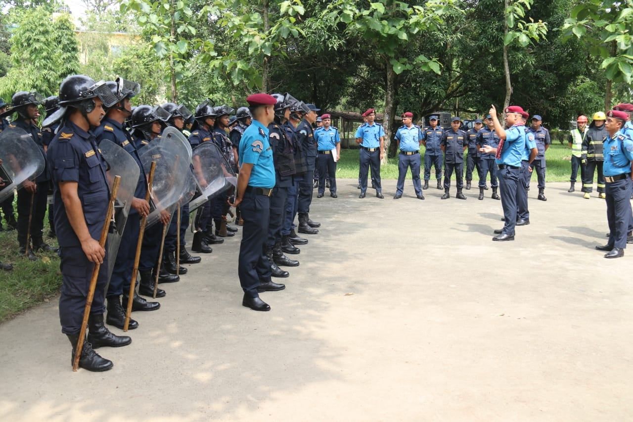 सोही क्रममा प्रदेश प्रहरी प्रमुख कार्कीले विपद व्यवस्थापन गुल्म चन्द्रगढी, झापाको निरीक्षण गर्नुका साथै बिपद उद्धारमा प्रयोग हुने सामग्रीहरुको अवलोकन गर्नु भई वर्षायामको समयमा हुने वाढी पहिरो जस्ता विपदका घटनाहरुमा नागरिकको धनजनको सुरक्षाका लागी तत्काल उद्धार कार्यमा परिचालन हुन सक्ने गरी तयारी अवस्थामा रहन निर्देशन दिनु भएको थियो । निरीक्षण भ्रमणको क्रममा जिल्ला प्रहरी कार्यालय झापाका प्रमुख प्रहरी उपरीक्षक राजन लिम्बुले प्रदेश प्रहरी प्रमुख कार्कीलाई झापा जिल्लाको समग्र शान्ती सुरक्षाको अवस्था, जनशक्ति व्यवस्थापन, भावि कार्य योजना, सुरक्षा चुनौतीहरु, भारतीय काउन्टर पार्टस संगको समन्वय र सहकार्य लगायतका विषयहरुमा अवगत गराउनु भएको थियो ।