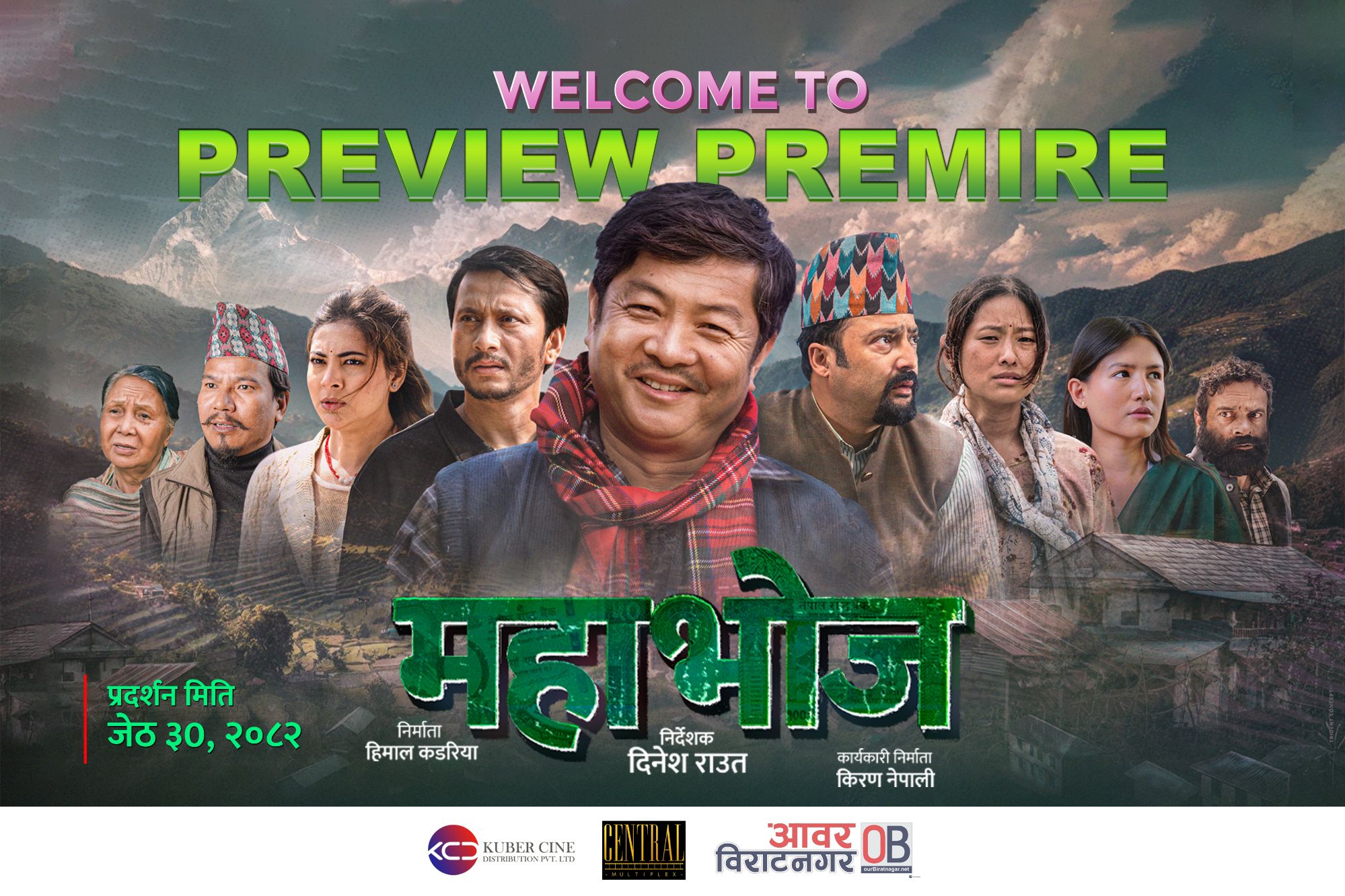 विराटनगर । आगामी जेठ ३० गतेबाट प्रदर्शनमा आउन लागेको चलचित्र 'महाभोज'ले प्रदर्शन अगावै विराटनगरसहित ४ वटा शहरहरुमा ग्राण्ड प्रिमियर शो गर्ने भएको छ।