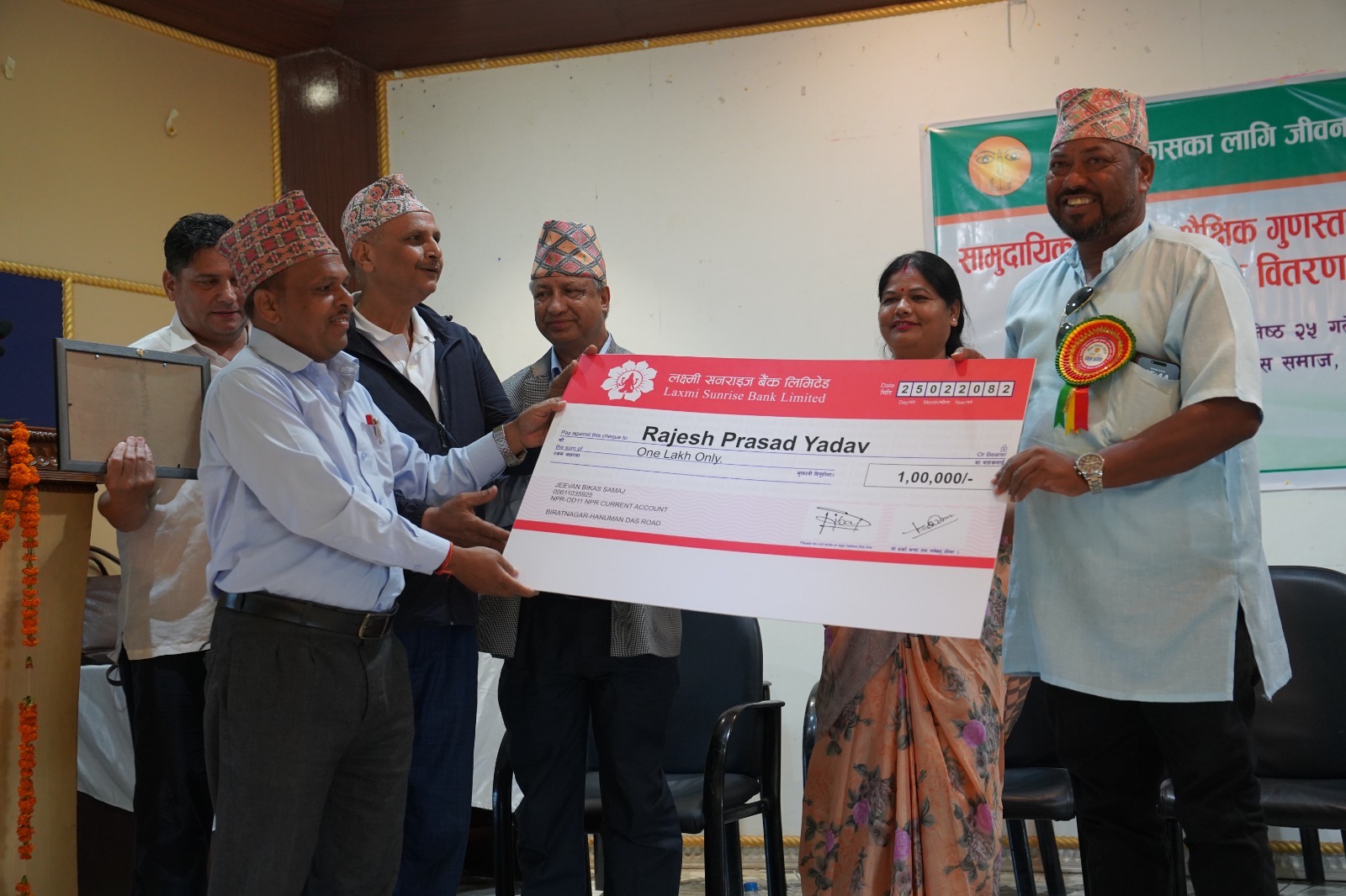 जीवन विकासका संस्थापक तथा मोरङ क्षेत्र नम्बर ५ का सांसद योगेन्द्र मण्डलले उनलाई पुरस्कार प्रदान गरे । पुरस्कार वितरण समारोहलाई सम्बोधन गर्दै सांसद मण्डलले अर्को वर्षदेखि विद्यालय व्यवस्थापन समिति अध्यक्षलाई पनि पुरस्कृत गर्ने घोषणा गरे । मोरङको दक्षिणी क्षेत्रका सामुदायिक विद्यालयहरुमा शिक्षण सिकाइका विभिन्न सूचा‌कका आधारमा उत्कृष्ट प्रधानाध्यापक घोषित गरिएको हाे ।