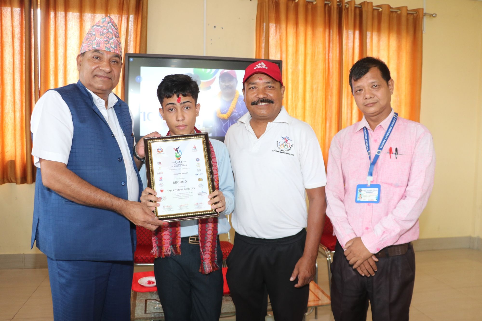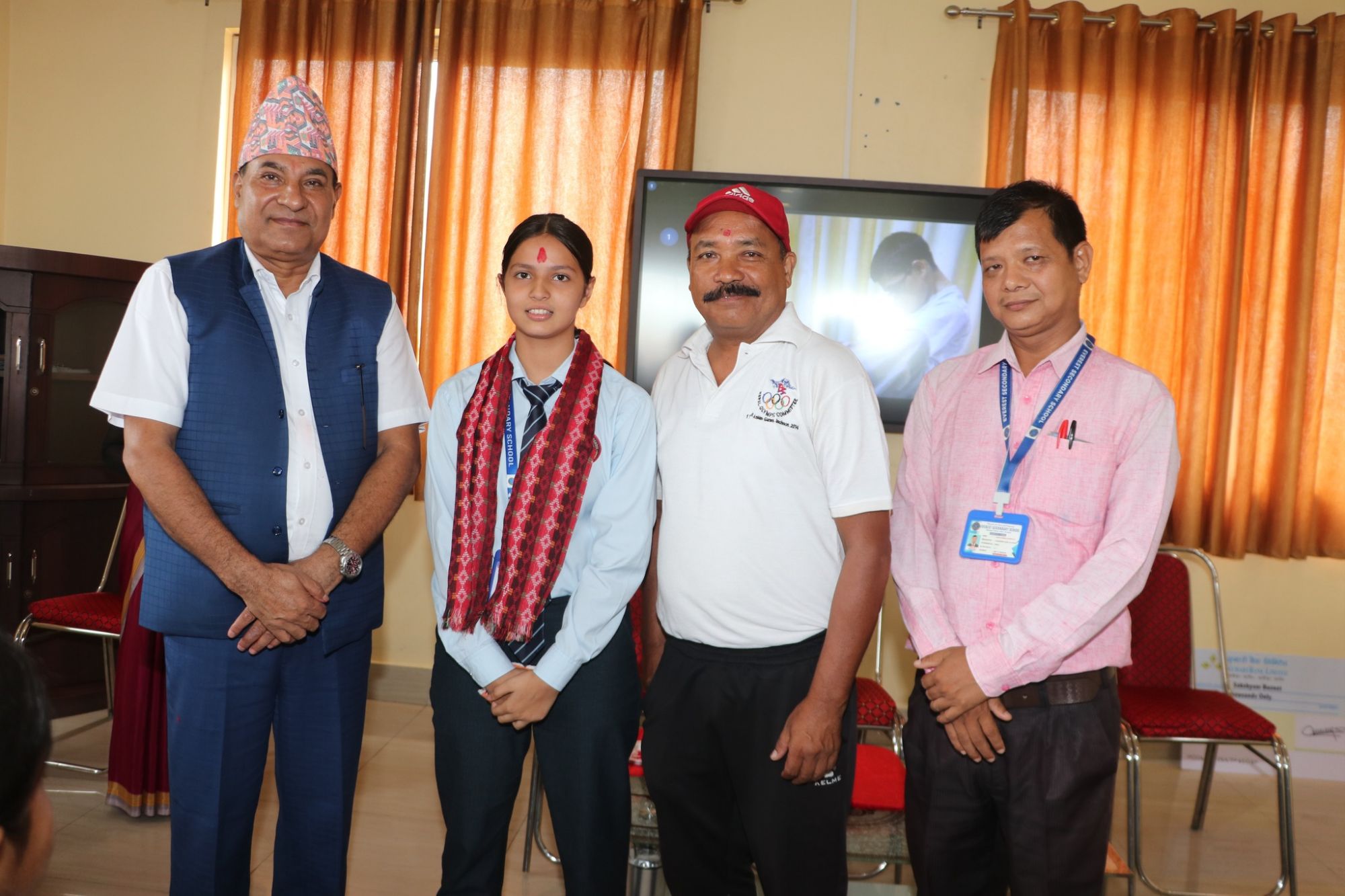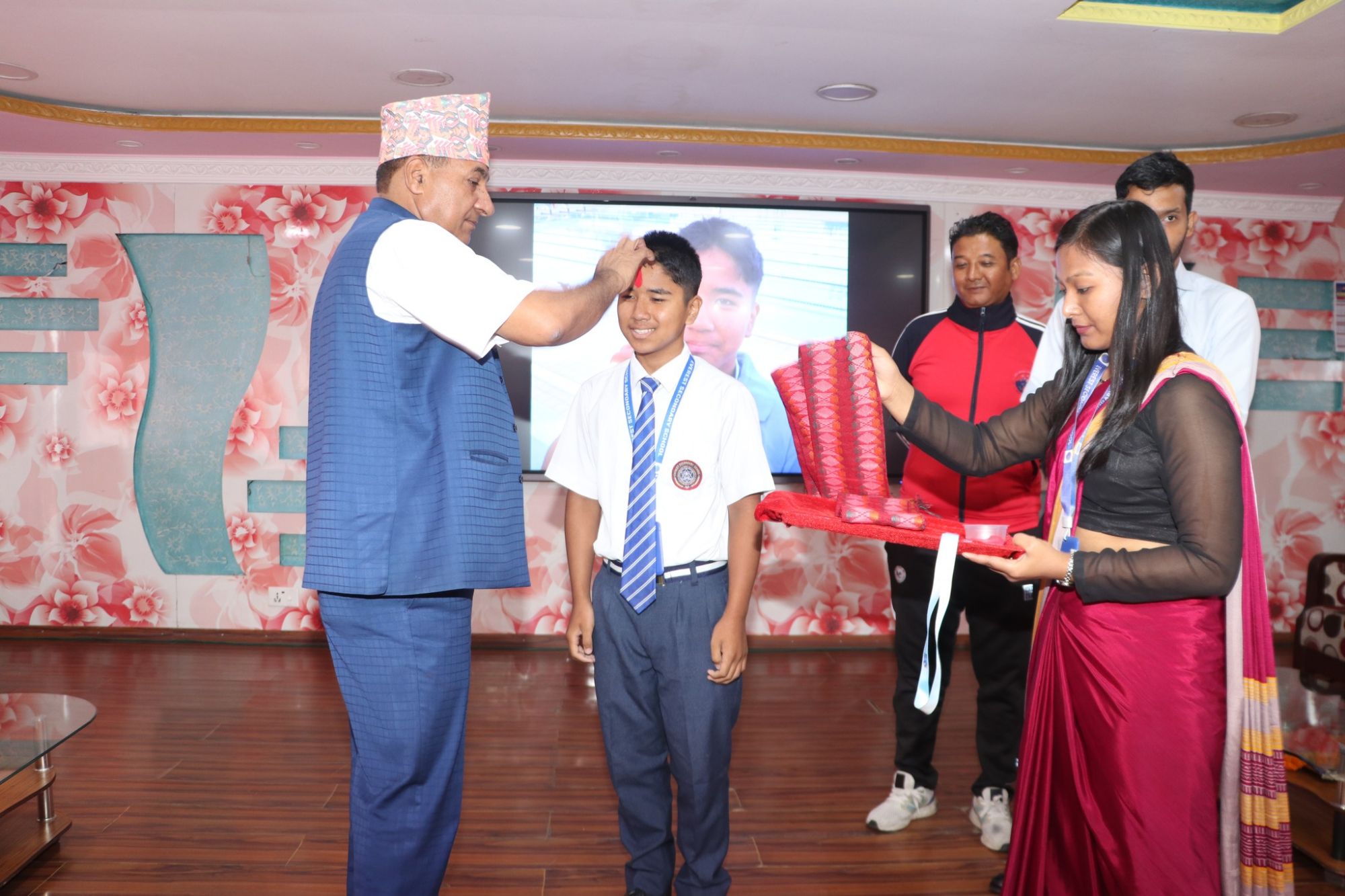 उहाँले विजयी खेलाडीहरुलाई हौसला प्रदान गर्दै भन्नुभयो, ‘यो उपलब्धिले खेलाडी विद्यार्थीको मात्रै हैन एभरेष्टको समेत इज्जत बढेको अनुभूति हामीले गरेका छौं ।’