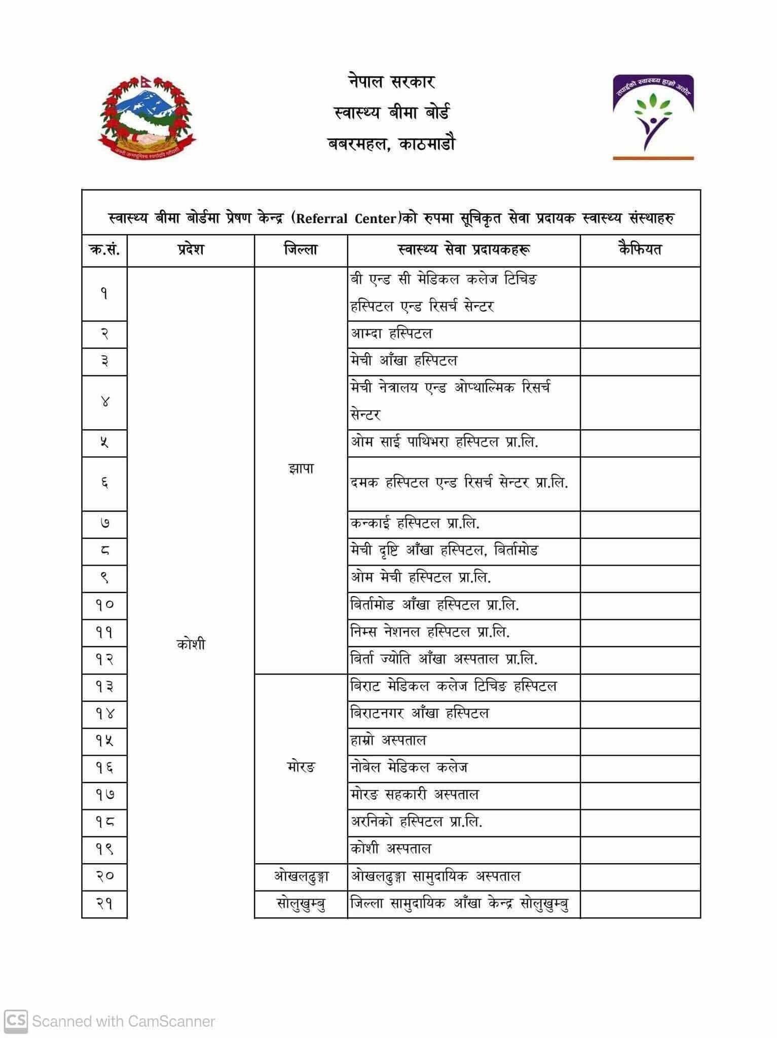 आगामी साउन १ गतेदेखि लागु हुने नयाँ व्यवस्थाअनुसार बिमितहरूले बोर्डबाट अनुमतिप्राप्त कुनै पनि सरकारी स्वास्थ्य संस्थाबाट स्वास्थ्य सेवा लिन सक्नेछन् ।