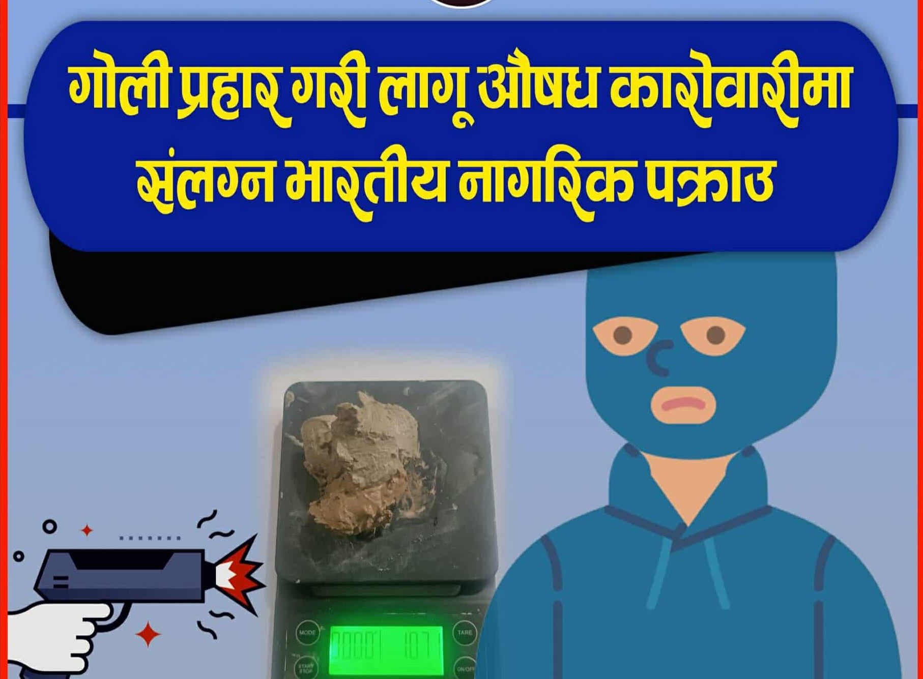 पक्राउ पर्नेमा भारत किसनगंज कोल्लिकोटका ३६ बर्षीय मोहमद इस्लाम रहेका छन । बिशेष सुचनाको आधारमा जिल्ला प्रहरी कार्यालय झापा र लागू औषध नियन्त्रण ब्युरो काँकरभिट्टाबाट खटिएको प्रहरी टोलीले चेकजाँच गर्दा इस्लामको साथबाट १०७ ग्राम १०० मिलिग्राम ब्राउन सुगर बरामद गरेको थियो ।