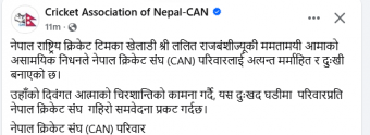 विराटनगर । नेपाल राष्ट्रिय क्रिकेट टिमका खेलाडी ललित राजबंशीकी ममतामयी आमाको असामयिक निधनप्रति नेपाल क्रिकेट संघ (क्यान)ले दुःख व्यक्त गरेको छ ।
