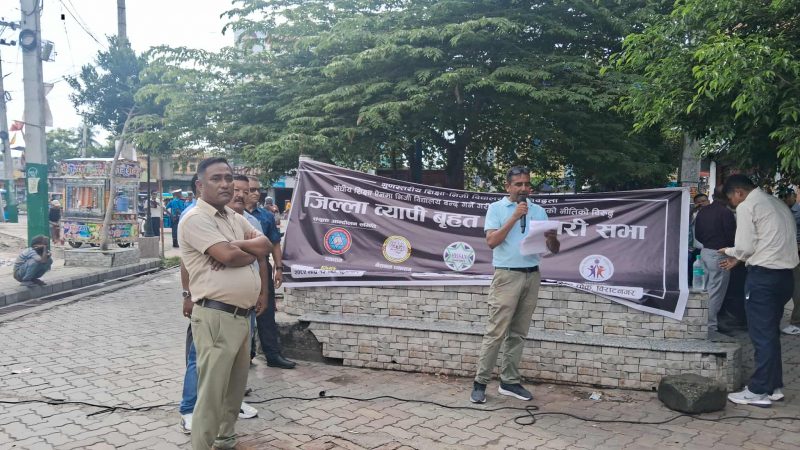 निजी शैक्षिक संस्थाका सञ्चालकहरूको छाता संगठन प्याब्सनसहित पाँच संगठनले विराटनगरको महेन्द्र चोकमा शुक्रबार जिल्लाव्यापी खबरदारी सभा आयोजना गरेका छन् ।