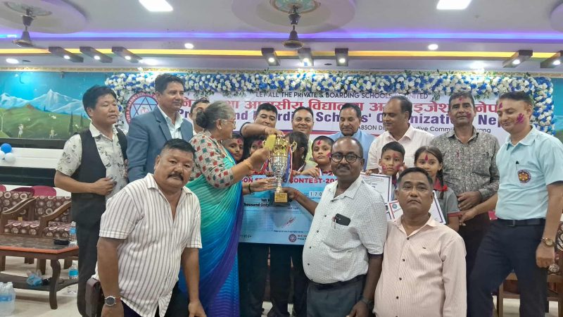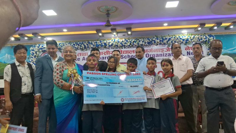 विराटनगर । प्याब्सन जिल्ला स्तरीय अंग्रेजी हिज्जे प्रतियोगिताको उपाधि विराटनगरमा रहेको एभरेष्ट स्कुलले जितेको छ । निजी तथा आवासीय विद्यालय अर्गानाईजेशन नेपाल (प्याब्सन) मोरङको आयोजनामा विराटनगरमा मंगलबार सम्पन्न प्रतियोगितामा ११ वटा विद्यालयलाई पछि पार्दै एभरेष्टले उक्त उपाधि जितेको हो ।