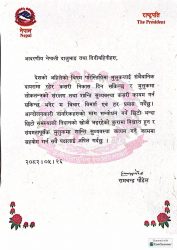 राष्ट्रपतिको अपिल : लोकतन्त्रको संरक्षण तथा शान्ति सुव्यवस्था कायम गर्न प्रयास गर्दैछु