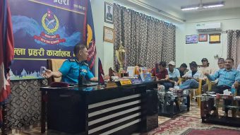 विराटनगर । जिल्ला प्रहरी कार्यालय मोरङमा सरुवा भएर आएका प्रहरी उपरीक्षक (एसपी) सँग बुधबार बिहान सञ्चाकर्मीबीच परिचायत्मक कार्यक्रमको आयोजना गरिएको थियो । दुईदिन अघि मात्र मोरङ आएका एसपी कबित कटुवालले उपस्थित सञ्चाकर्मीहरुसँग आफ्नो परिचयसँगै सुझाव पनि मागेका थिए । झण्डै दुई दर्जन बढी राष्ट्रिय तथा स्थानीयस्तरका सञ्चारगृहमा कार्यररत सञ्चारकर्मीहरुले चाडपर्व भित्रिएसँगै विराटनगर लगायत मोरङका विभिन्न ठाँउहरुमा जुवा खाल र डाईस खेलाउने कार्य भएको भन्दै नियन्त्रणका लागि सुझाव दिएका थिए ।