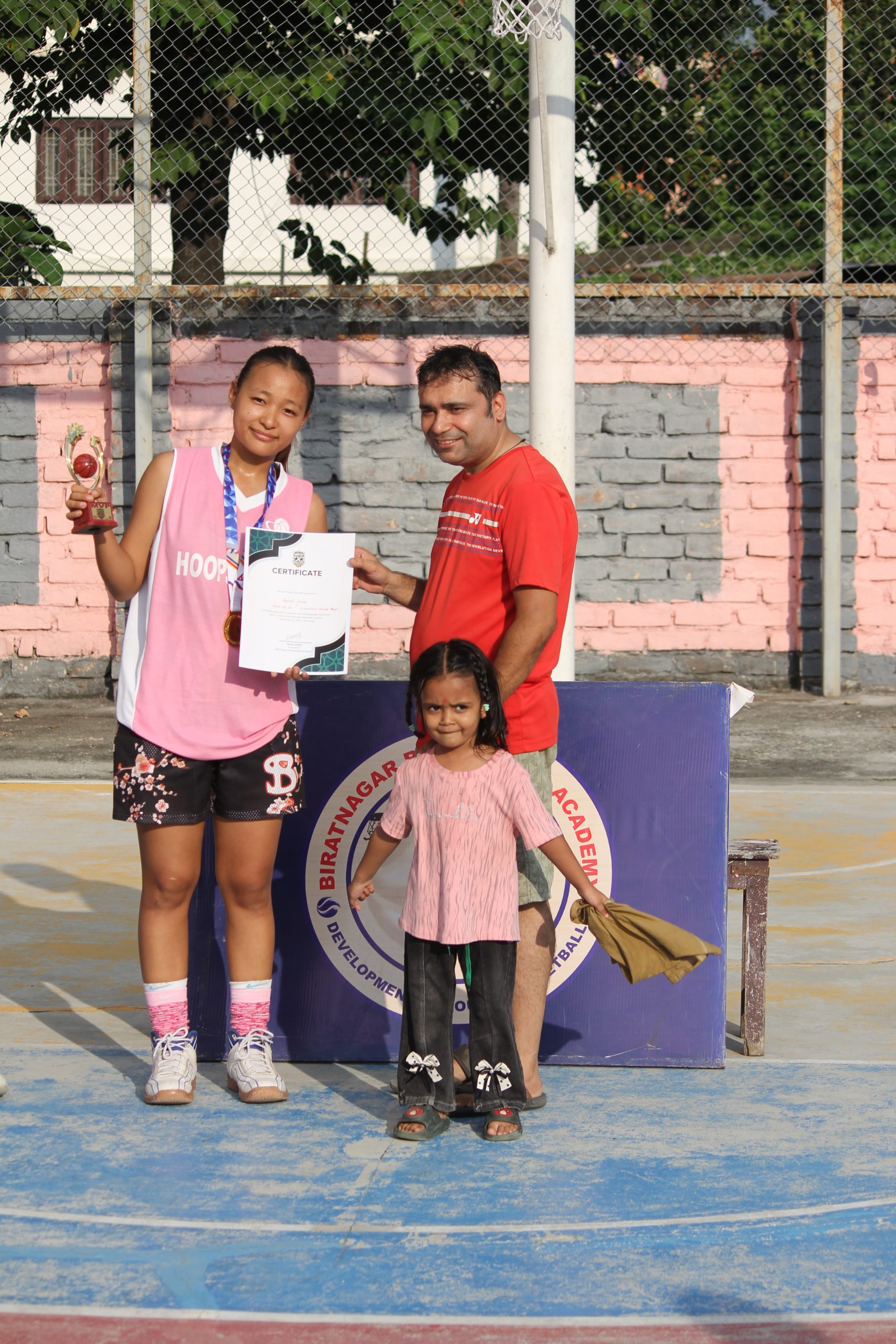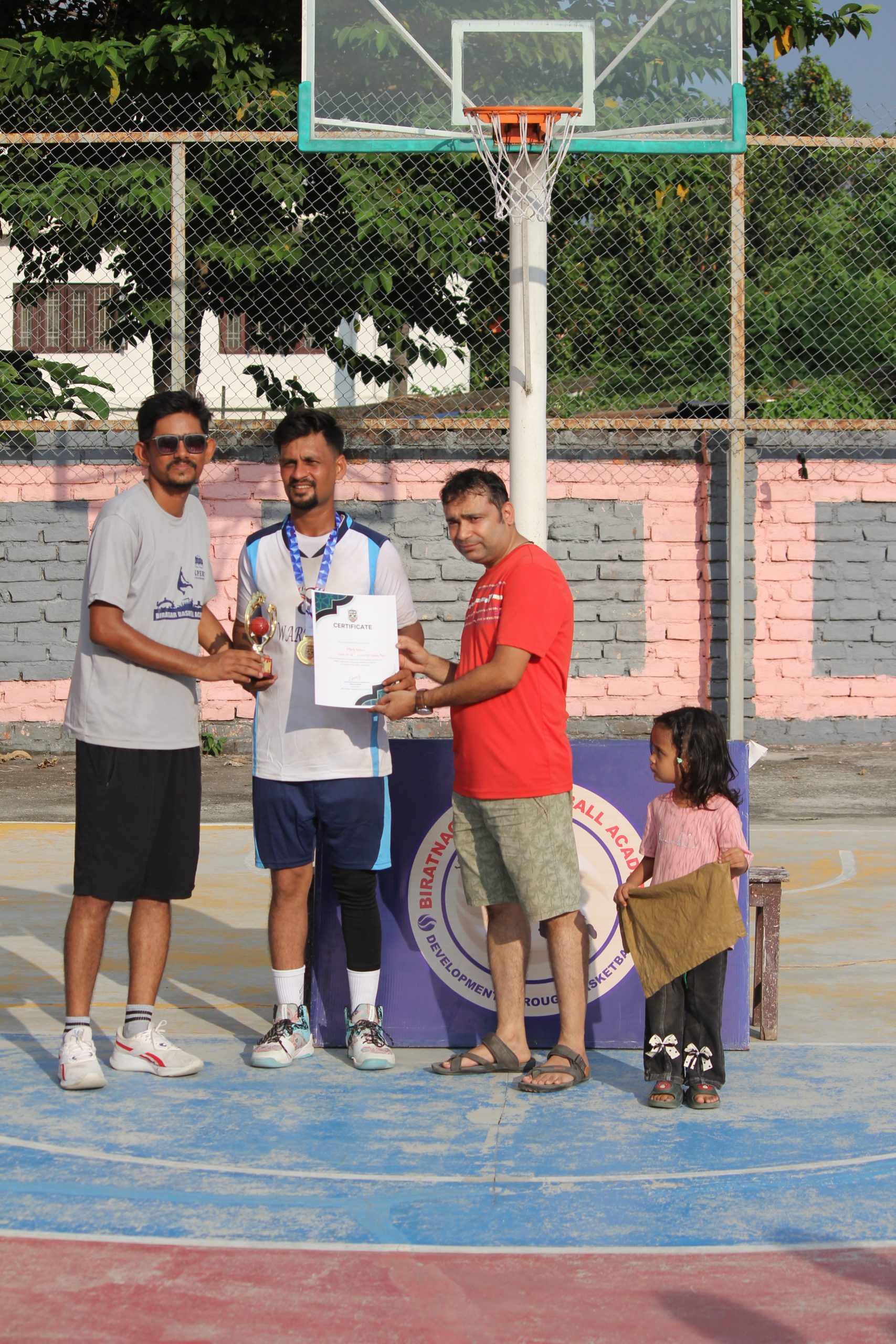 विजेता र उपविजेताहरूलाई ट्रफी, मेडल, प्रमाणपत्र तथा नगद पुरस्कार वितरण गरिएको थियो।पुरस्कार वितरण विराटनगर बास्केटबल एकेडेमीका अध्यक्ष सरोज लम्साल, मोरङ बास्केटबल संघका सचिव त्रिलोक बस्तोला, च्याम्पियन स्पोर्ट्सका निर्देशक सरोज पौडेल र पारिजात फास्ट फुडका निर्देशक परितोष गिरी ले गर्नुभयो।