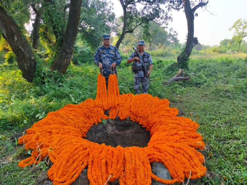 विराटनगर । तिहारको लागि भारतबाट ल्याएको अवैध सयपत्री फूल खाल्डो खनेर नष्ट गरिएको छ । सशस्त्र प्रहरी बल प्रस्तावित रानीक्षेत्र गुल्म र प्लान्ट क्वारेन्टाइन कार्यालय रानी विराटनगरको संयुक्त टोलीले भारतबाट चोरीपैठारी गरी ल्याइएका सयपत्री फूल र हरियो तरकारी बरामद गरी नष्ट गरेको छ । करिब ३ सय केजी सयपत्री फूल र ९० केजी हरियो तरकारी खाल्डो खनेर नष्ट गरिएको छ ।