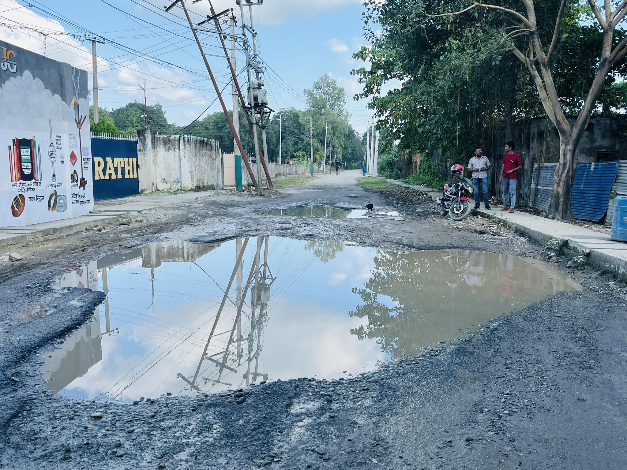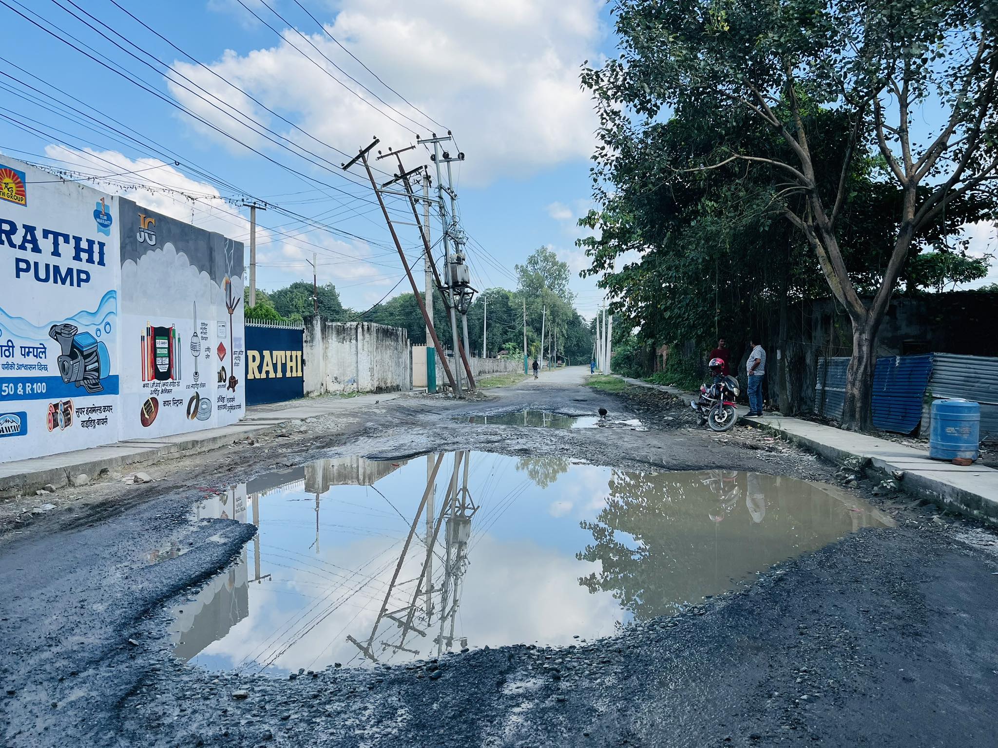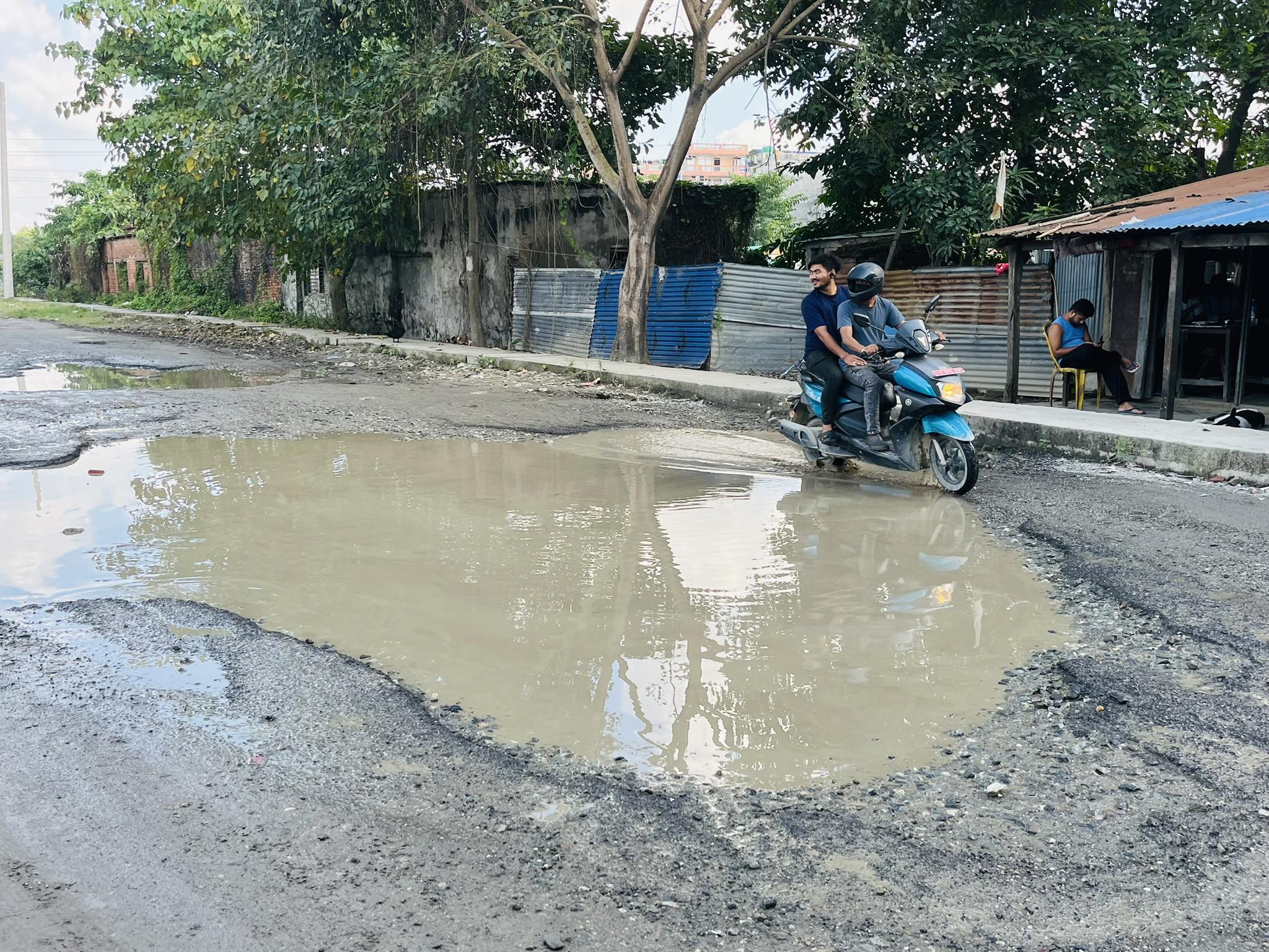 विराटनगर । विराटनगर–७ स्थित परम विश्रान्तिघाट जाने सडक अत्यन्तै जीर्ण बनेको छ । दैनिक विशेष कारणवश सवारीहरु आवत–जावत गर्नुपर्ने सडकमा खाल्डो बढ्दै गएर पोखरी बनेको हो । पानी परेपछि सडकको उक्त खाल्डो भरियाँ माछा पालनका लागि खनिएको पोखरी जस्तो देखिन्छ । उक्त सडकमा सर्वसाधारणलाई हिँडडुल गर्न समेत कठिनाइ भएको गुनासो गरेका छन् ।