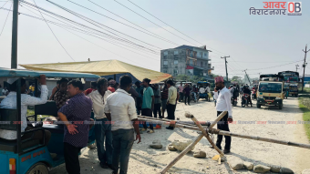 रंगेली-विराटनगर सडक खण्डमा स्थानीयले ढाट लगाएर गरे सडक अवरोध
