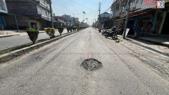 विराटनगर । विराटनगरको मुख्य व्यापारिक मार्ग मानिने तीनपैनीदेखि पुष्पलाल चौकसम्मको सडक अहिले खाल्डोले भरिएको छ । सडकका ठाउँ–ठाउँमा खाल्डा परेकाले सवारीसाधन गुडाउन कठिनाइका साथै दुर्घटनाको जोखिम पनि उच्च भएको हो ।