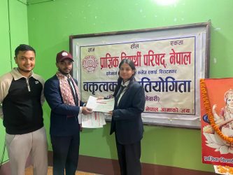 विराटनगर । प्राज्ञिक विद्यार्थी परिषद्, नेपाल इडेनबर्ग इन्टरनेशनल कलेज (विराटनगर) एकाइले “मेरो देश मेरो जिम्मेवारी” राष्ट्रव्यापी अभियान–२०८२ तथा परिषद्को स्थापना दिवसको अवसरमा क्याम्पस–स्तरीय वक्तृत्वकला प्रतियोगिता सफलतापूर्वक सम्पन्न गरेको छ।