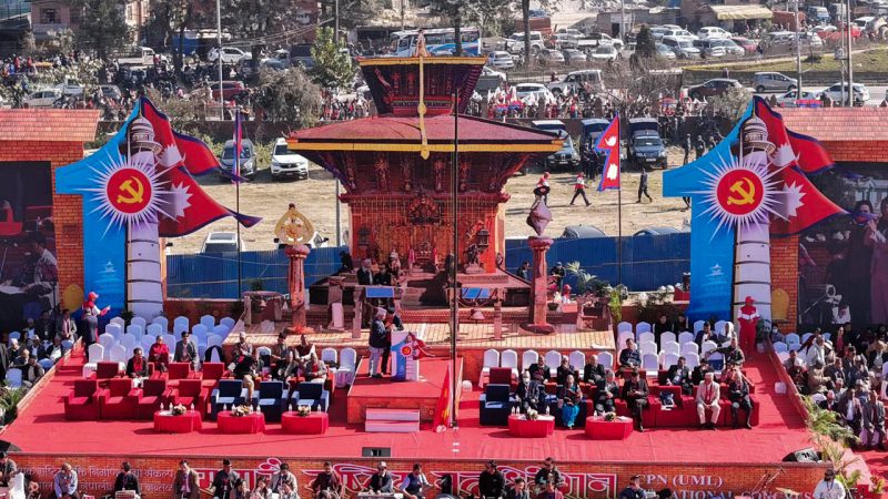 नेकपा एमालेको ११ औँ राष्ट्रिय महाधिवेशन भक्तपुरको सल्लाघारीस्थित खुल्ला चौरमा उद्घाटन गरिएको छ । उद्घाटन समारोहमा नेता तथा कार्यकर्ताहरूको उपस्थिती उत्साजनक देखिएको छ । अध्यक्ष केपी शर्मा ओलीले रिमोटबाट झन्डोत्तोलन गरेर बत्ती बाल्दै महाधिवेशनको उद्घाटन गरेका छन् ।
