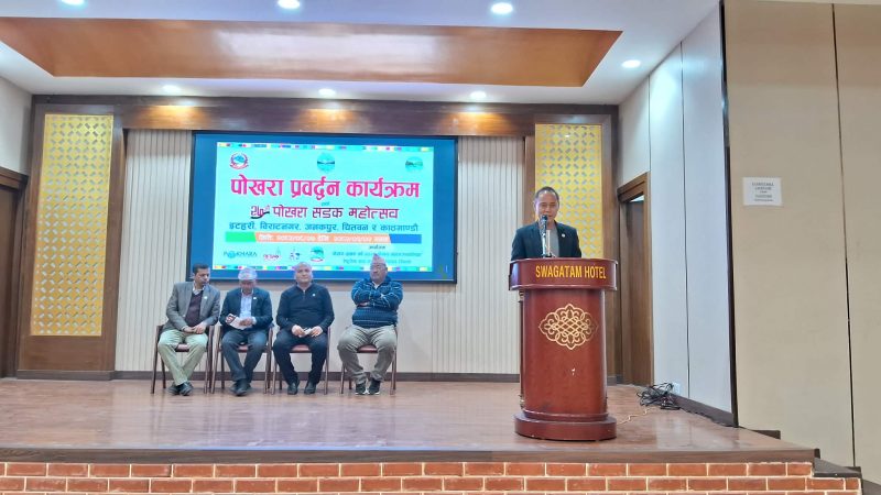 यसैक्रममा आईतबार पोखराका एक दर्जन बढी पर्यटन व्यावसायीहरु विराटनगरको होटल स्वगतममा आईपुगेका थिए । उनीहरुले पत्रकार सम्मलेनको आयोजना गरी आगामी पुष १३ गतेबाट १७ गते सम्म पोखरा सडक महोत्सव हुनेबारे जानकारी दिएका छन् ।