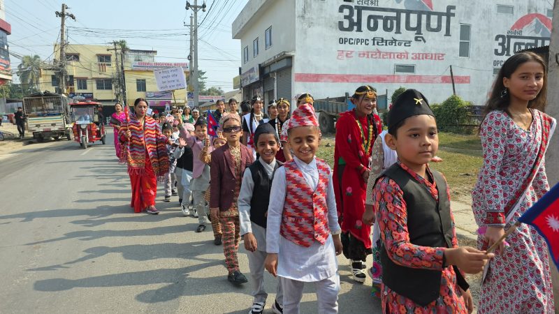 विद्यार्थीहरूले विभिन्न जातिय पोसाकमा सजिएर ढाका टोपी लगाएर विद्यालयमा उपस्थित भई नेपाली संस्कृति, पहिचान र राष्ट्रिय पोशाकको महत्वलाई उजागर गर्दै ¥याली निकालेको थियो ।