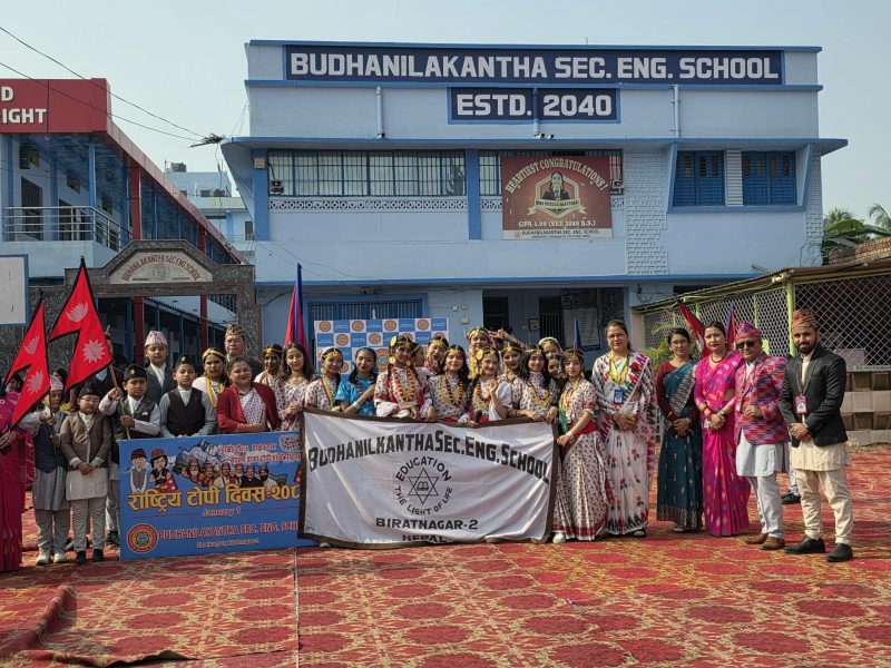 विराटनगर । विराटनगर–२, सोमबारेमा रहेको बुढानिलकण्ठ स्कुलले नेपाली मौलिक पहिचान झल्काउने उद्देश्यका साथ १३ औँ ढाका टोपी दिवस भव्य रूपमा मनाएको छ ।