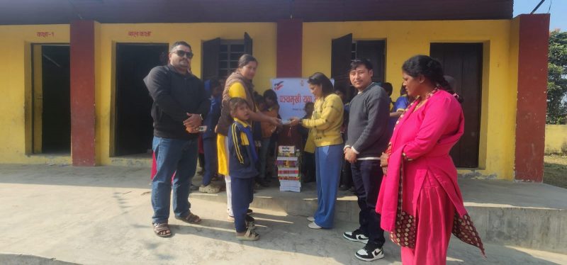 विराटनगर । तिहारको समयमा देउसीभैलो खेलेको संकलित रकमले विराटनगर महानगरपालीका १२ को दुई वटा विद्यालयका विद्यार्थी स्टेशनरी सामाग्री वितरण गरिएको छ । विराटनगर १२ मा रहेको पञ्चमुखी युवा समाजले यसैबर्ष तिहारमा देउसीभैलो खेलेको संकलित रकमबाट विद्यार्थीलाई स्टेशनरी सामग्री वितरण गरेका हुन् ।